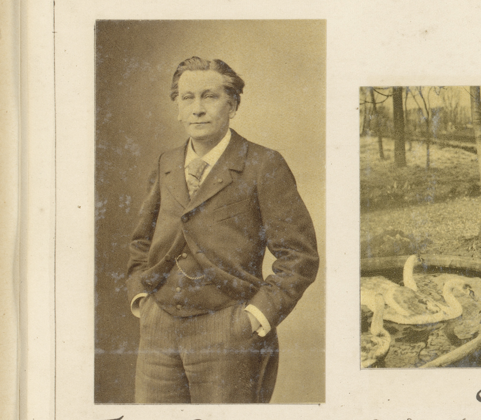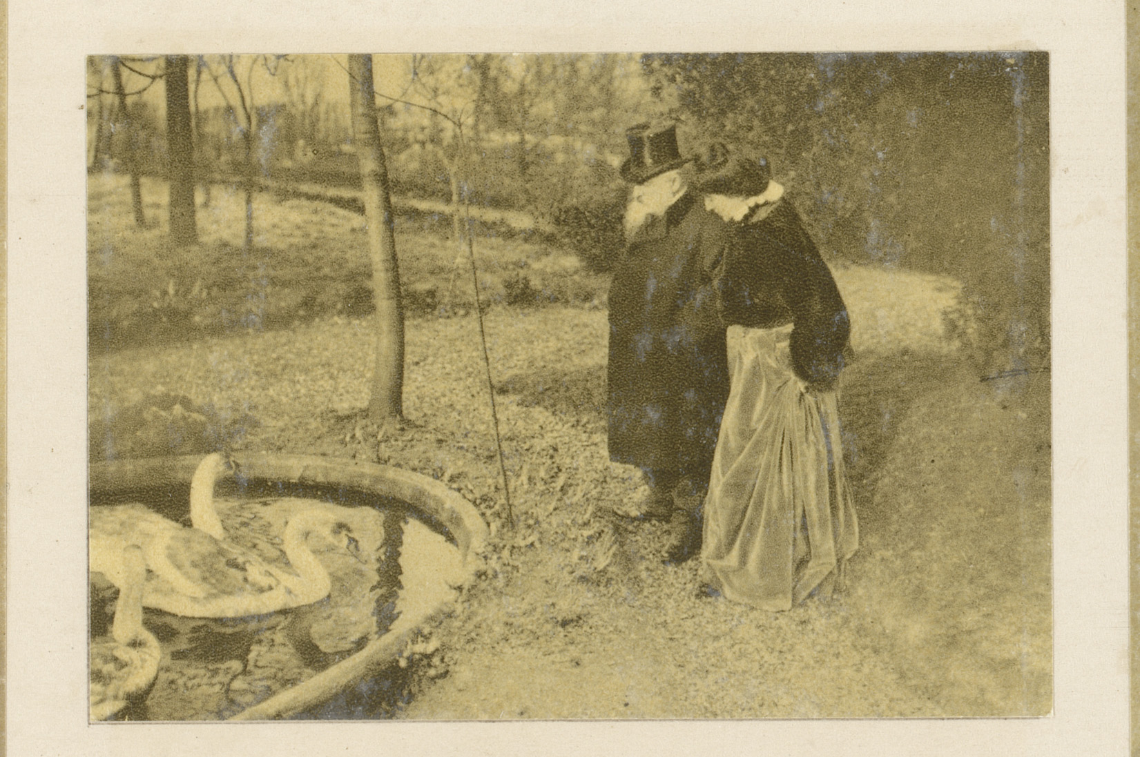 Auguste Rodin met een vrouw bij een vijver met zwanen