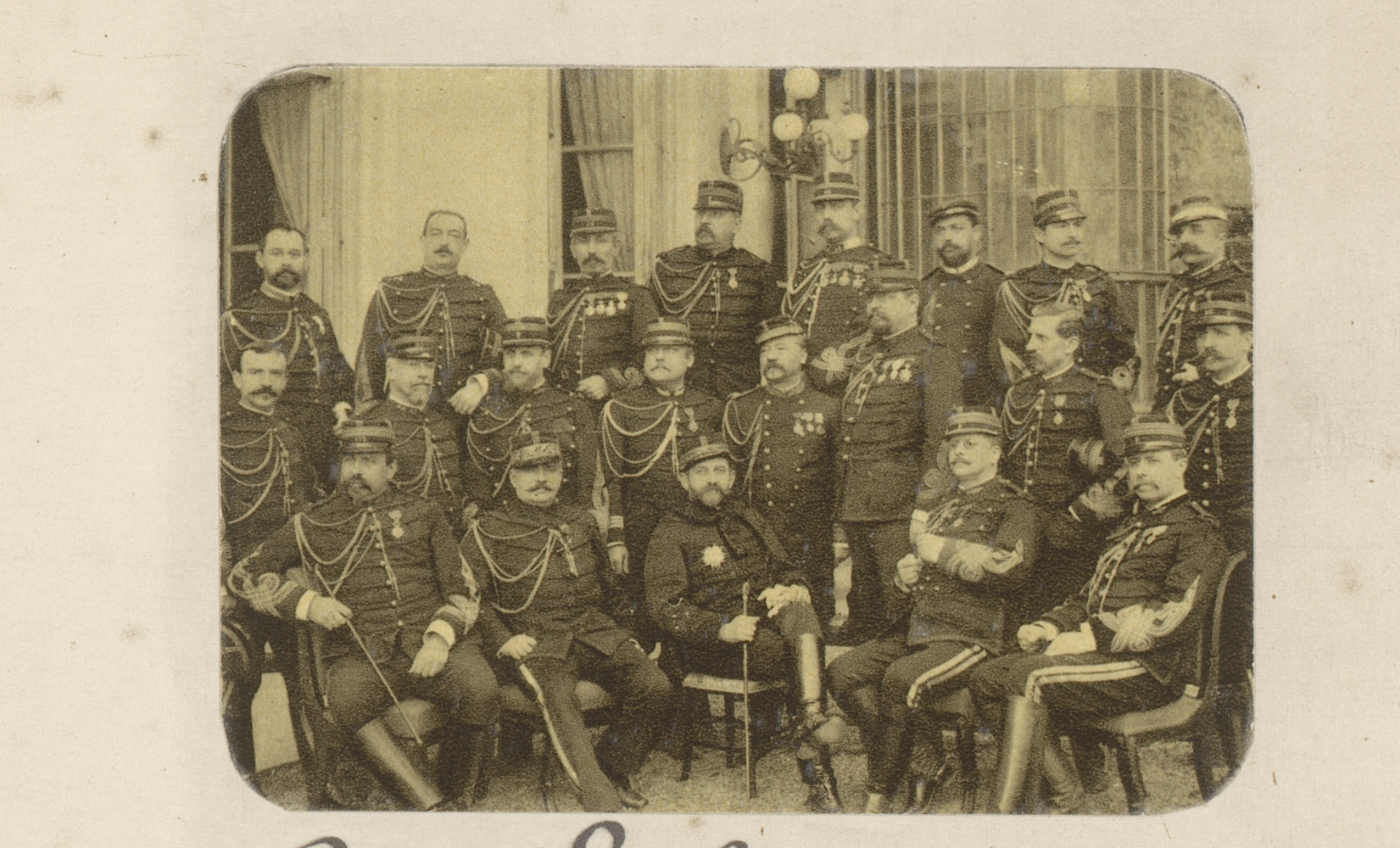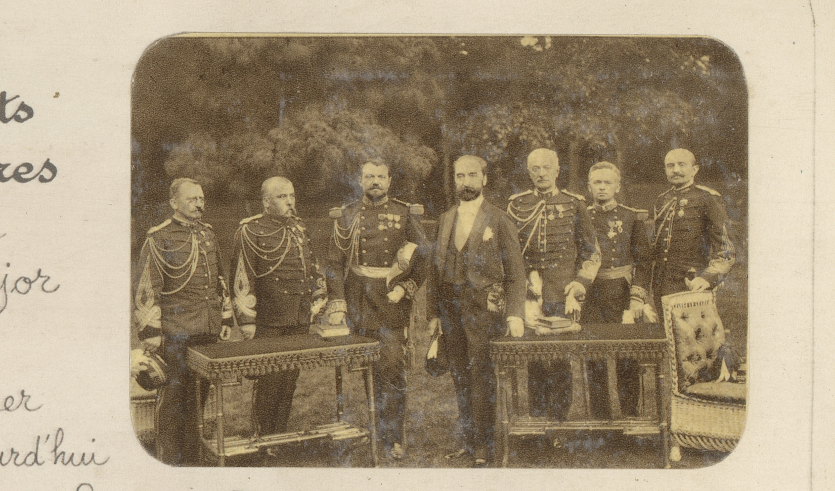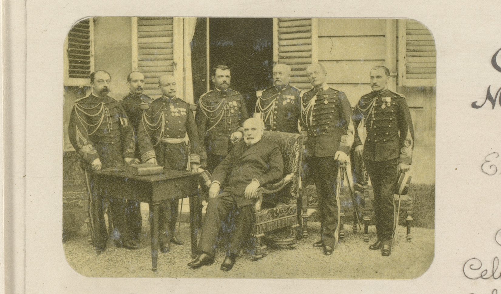 Portret van Jules Grévy te midden van Franse militairen