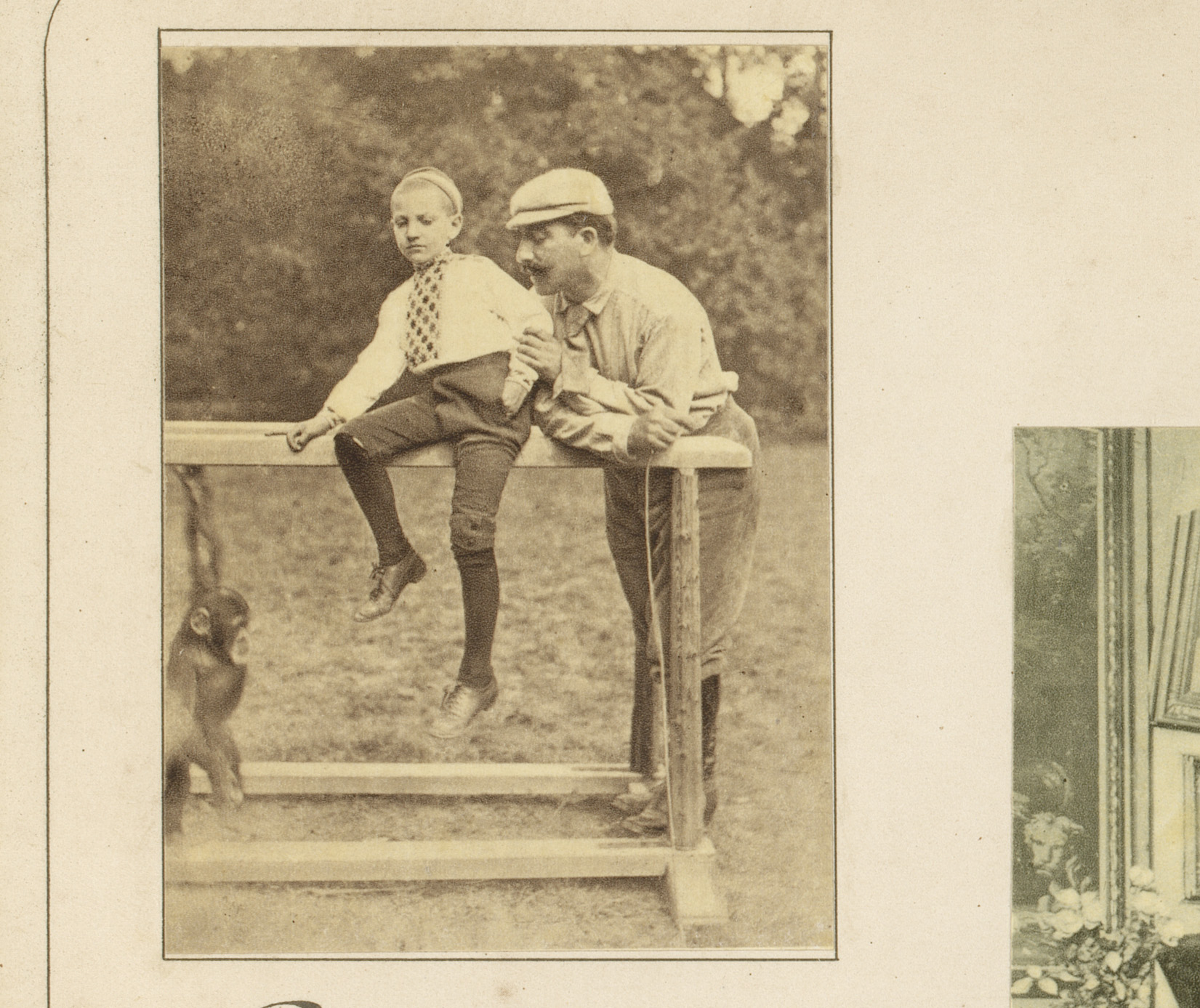 Lucien Guitry met zijn zoon Sacha en een aap