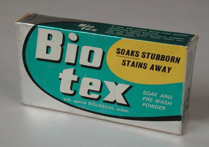 Ansichtkaart van Biotex, met afbeeldingen van reclam...
