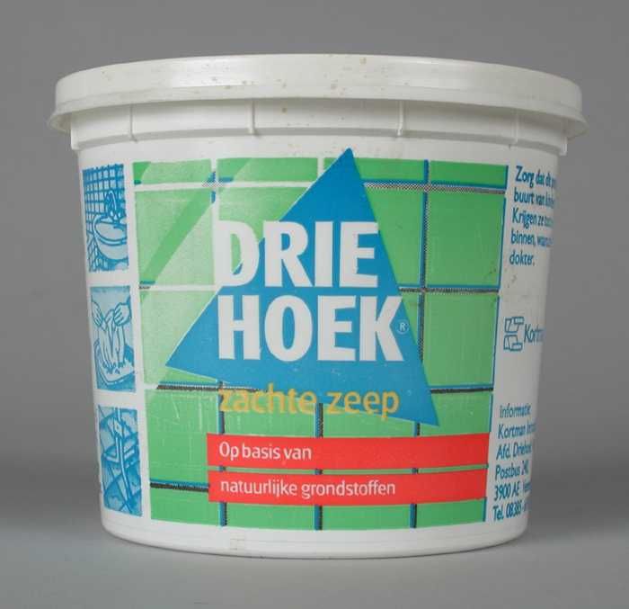 Partij etiketten driehoekzeep, opdruk in geel, groen...