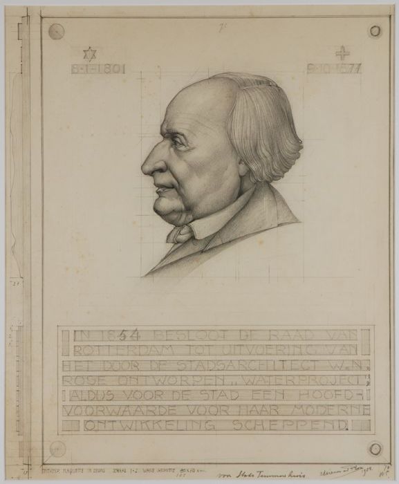 Ontwerptekening voor gedenkplaat met portret van ir....