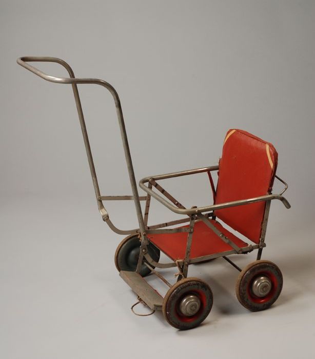 Inklapbare poppenwagen, rode zitting, metalen wielen