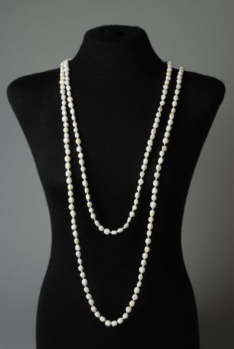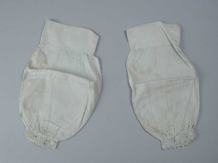 Paar korte ondermouwen van fijn wit katoen, gebreid ...