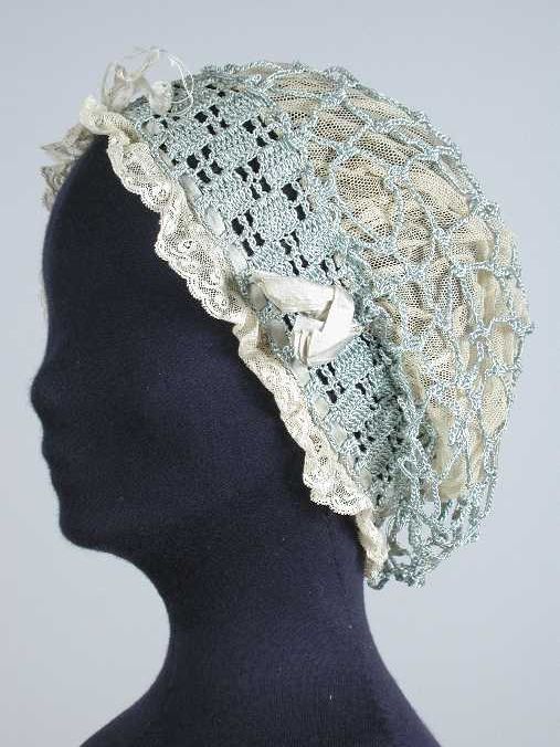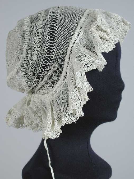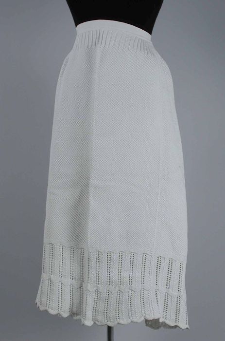 Paar mitaines van fijn wit katoen, gebreid in reliëf...