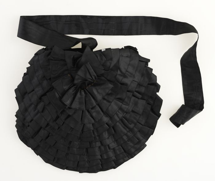 Tweedelige japon van zwarte wol met ingeweven grijze...