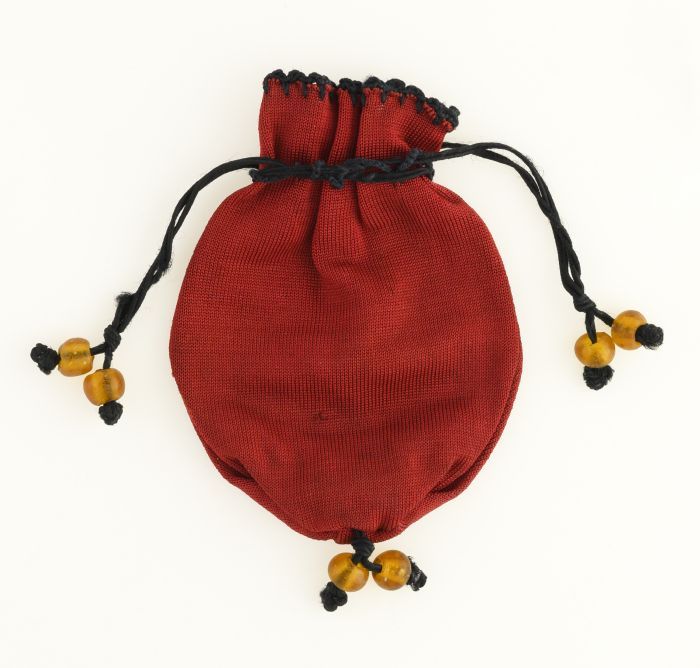 Paar ondermouwen van sits, blauw fond met donkerrood...