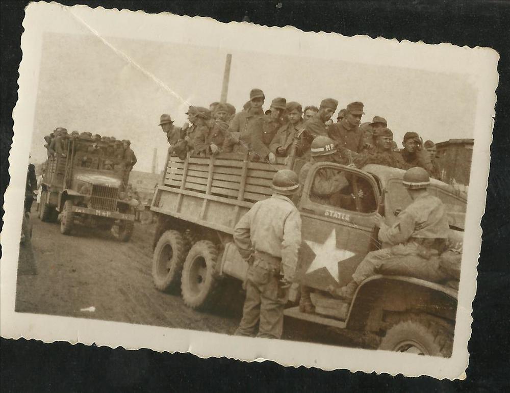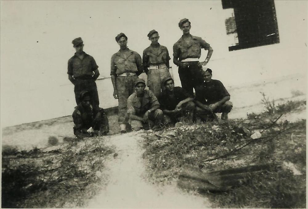 groepsfoto soldaten met borden en bestek