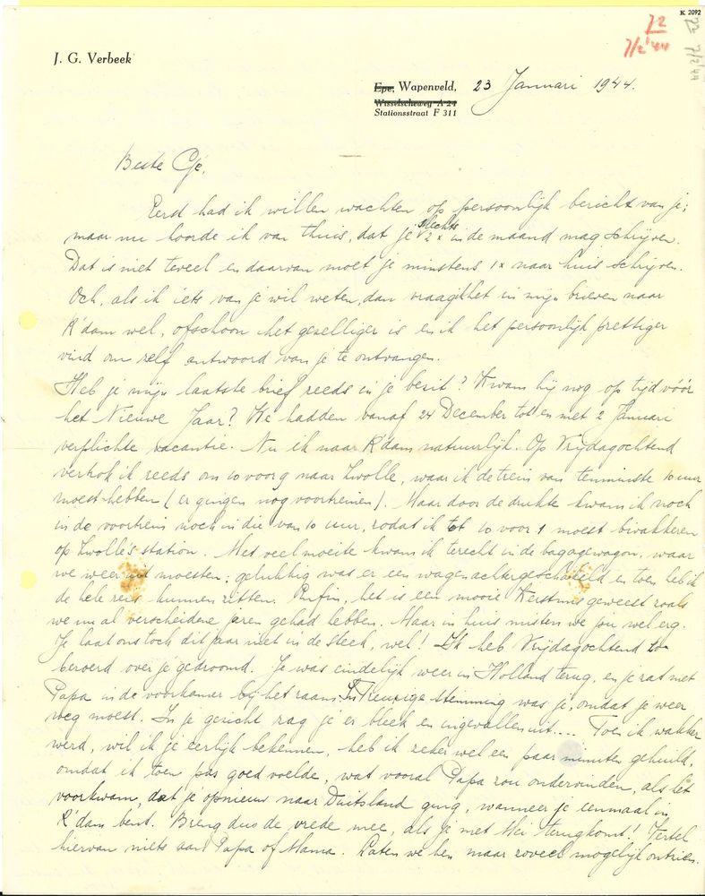 Brief uit Rotterdam aan Gé Verbeek in Watenstedt, 23...