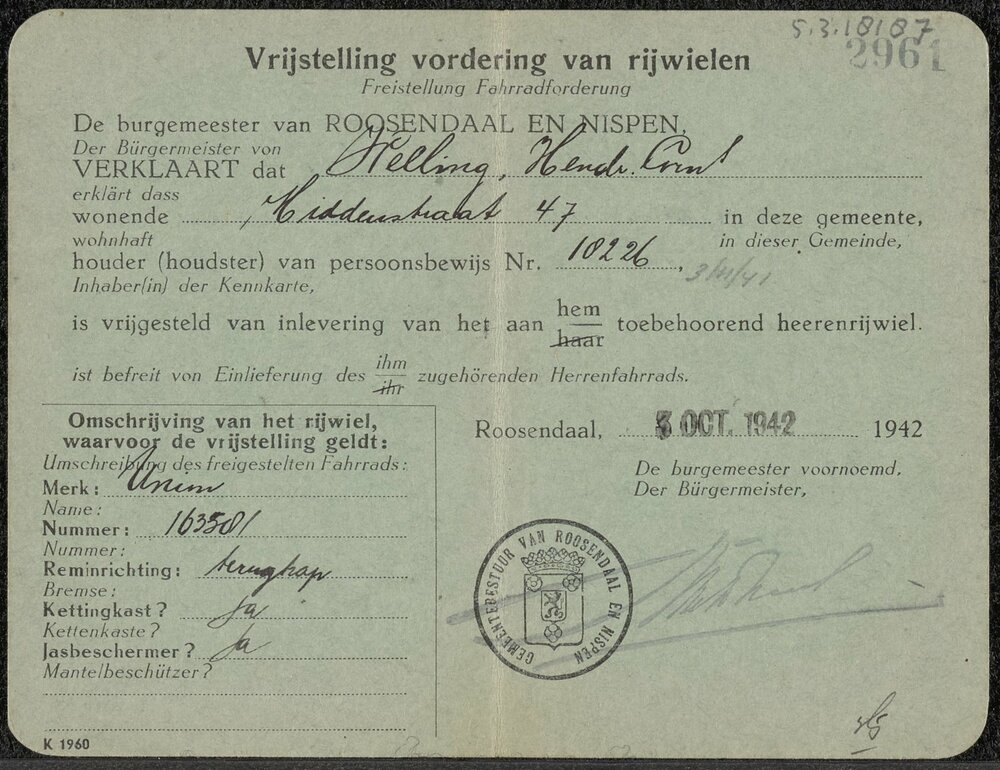 Vrijstelling vordering van rijwielen op naam van H.C...