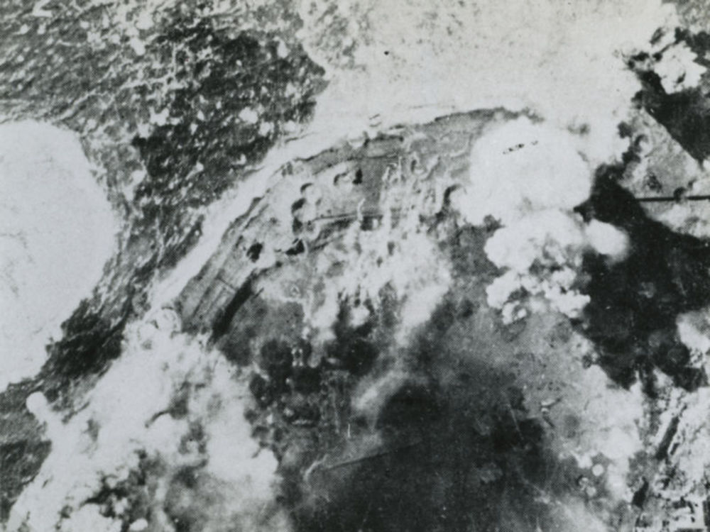 Luchtfoto van zeedijk te Westkapelle na het bombardm...