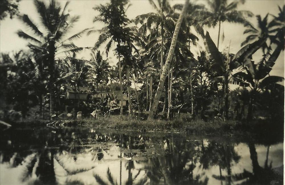 Nederlands Indië; meertje, huisje, palmboom