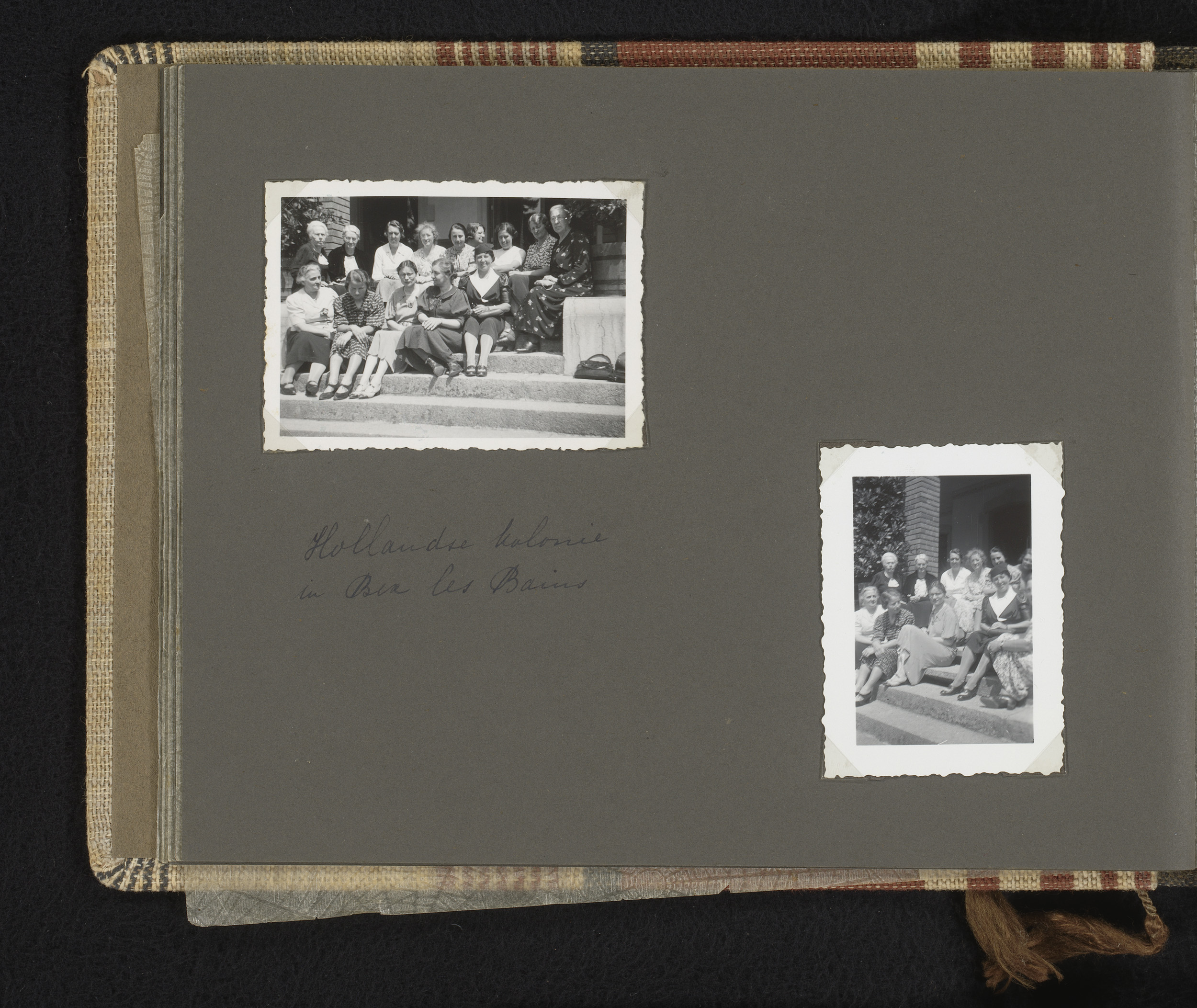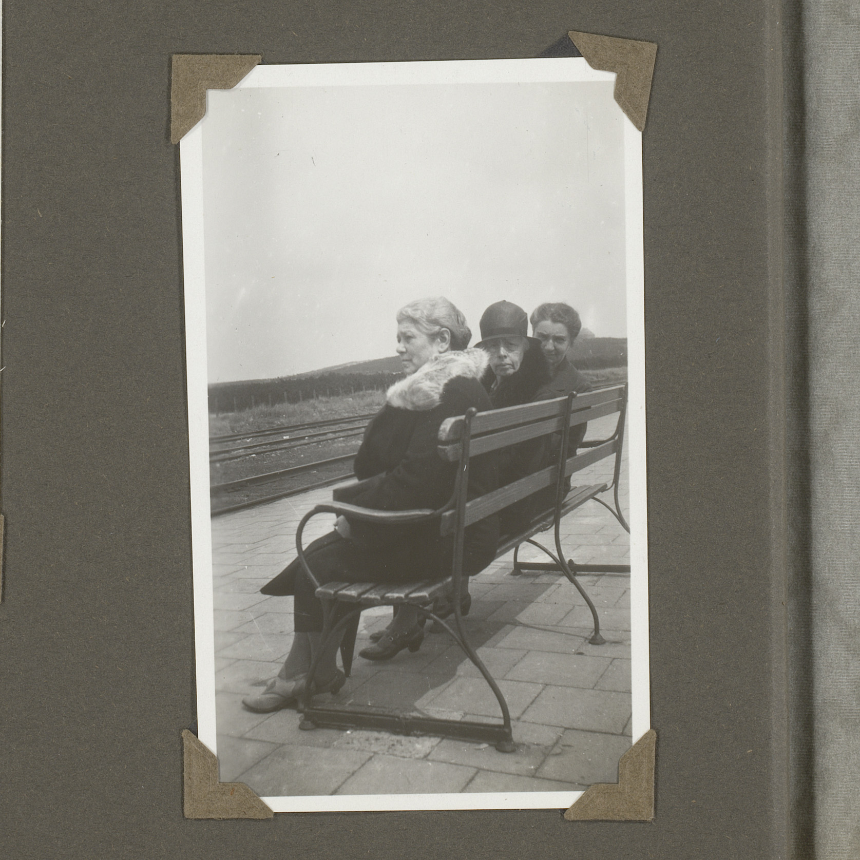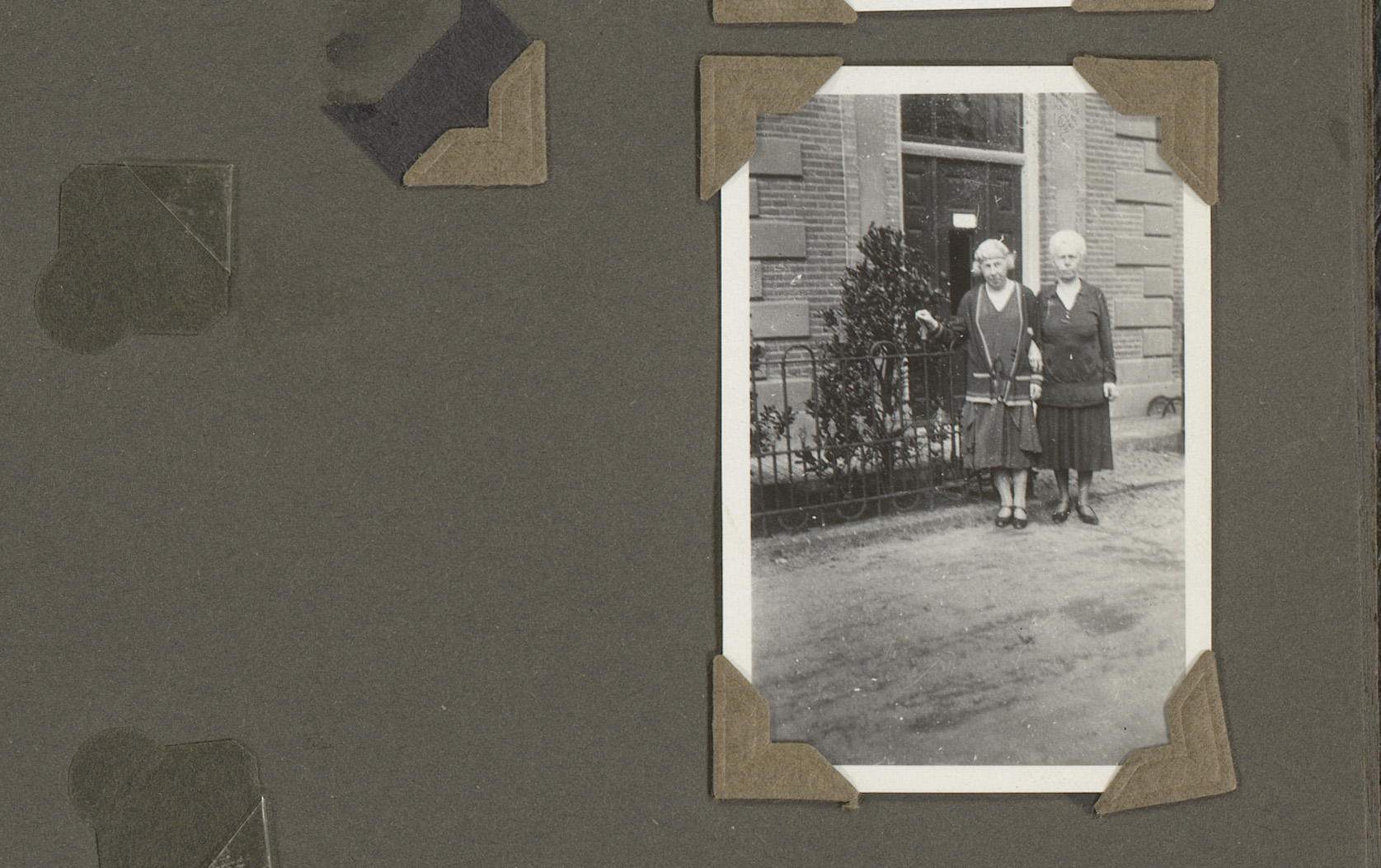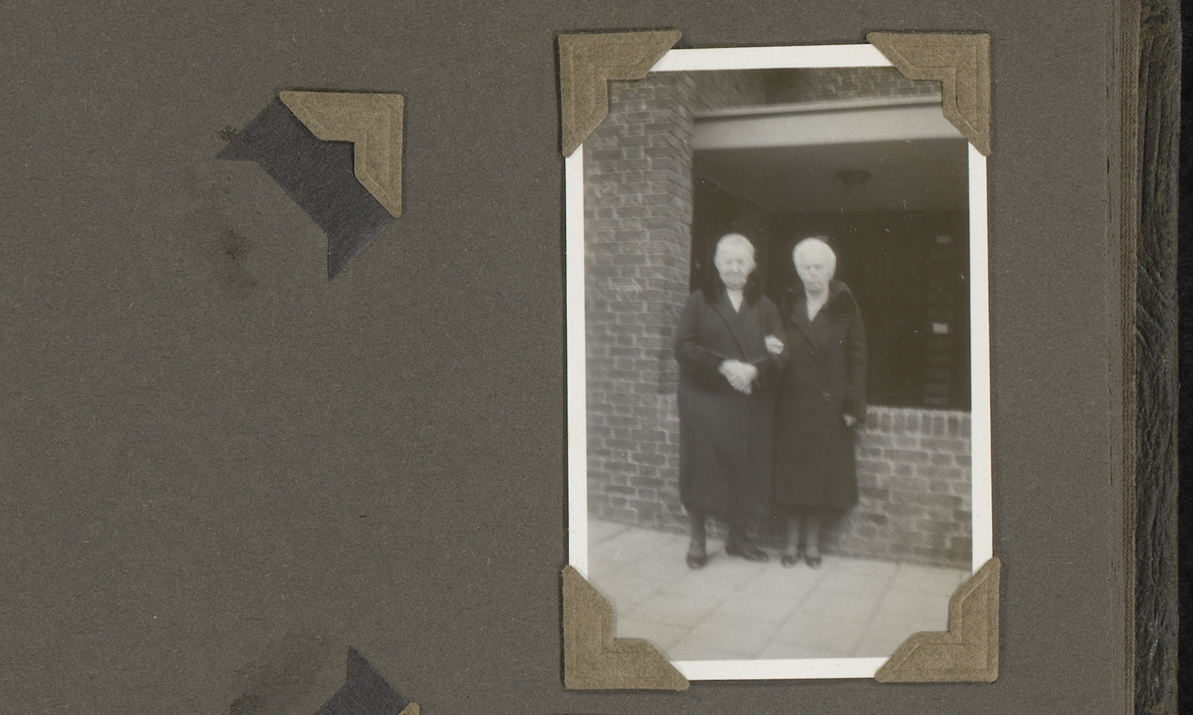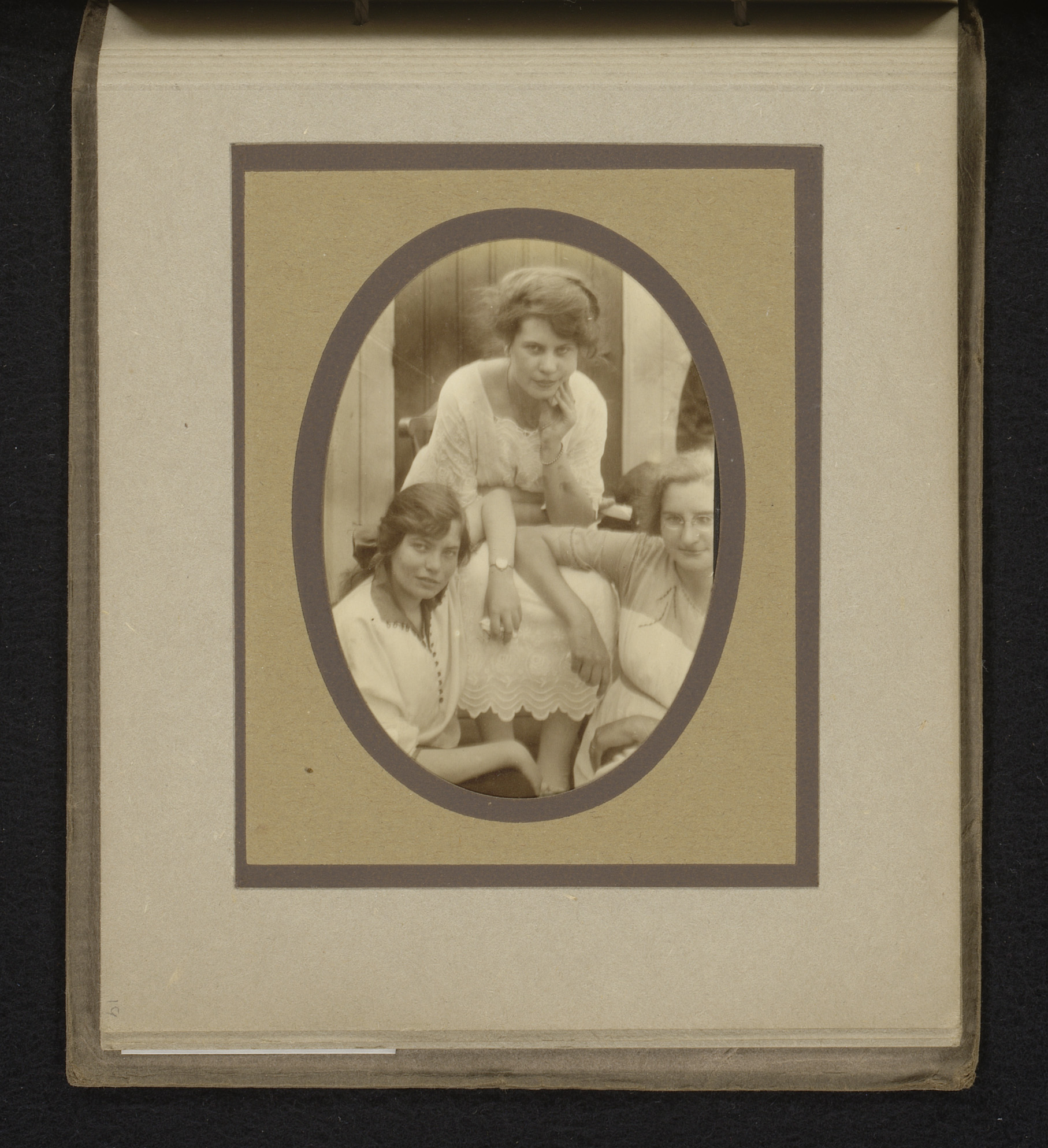 Goepsfoto van drie zittende vrouwen met daarachter e...