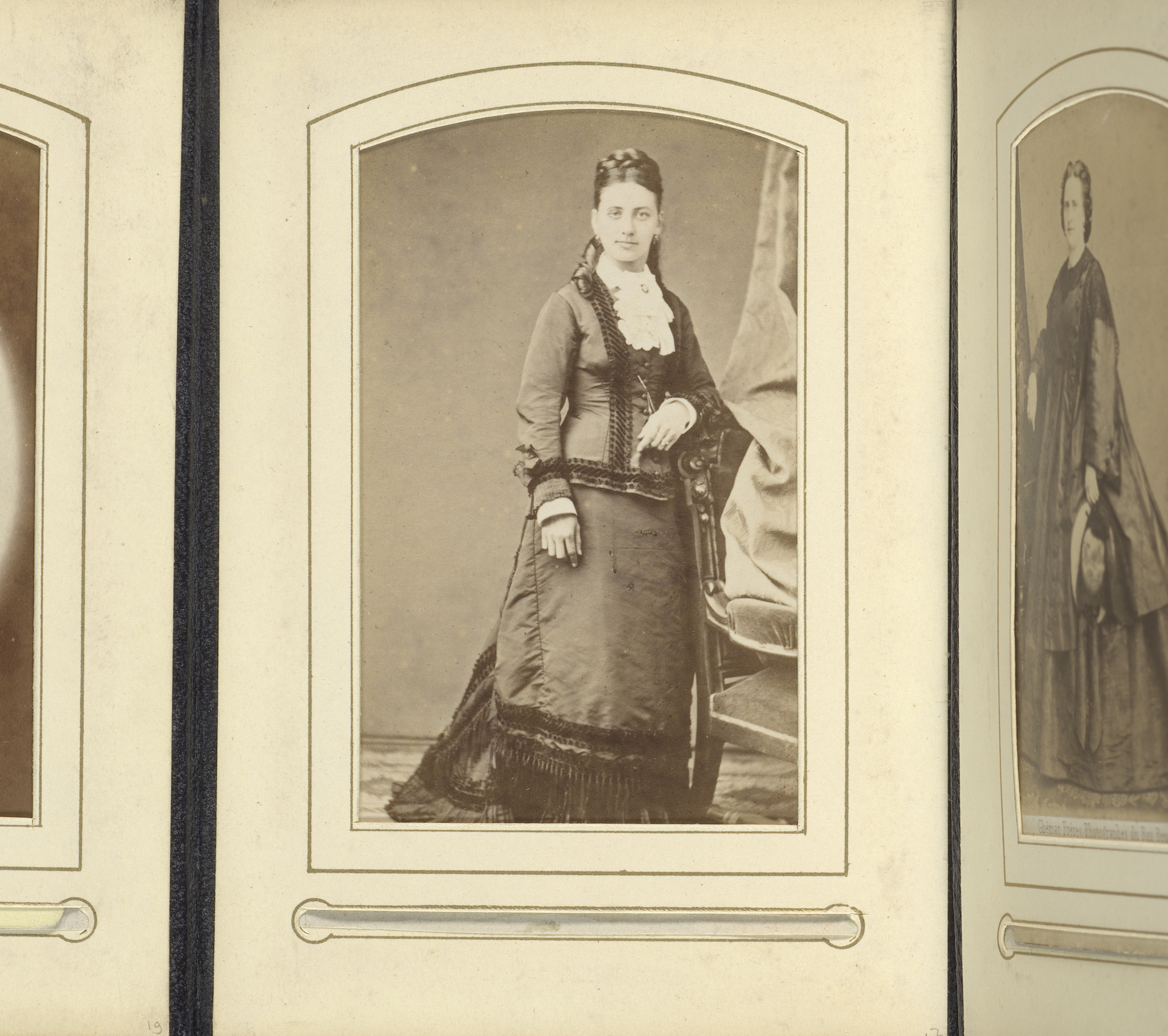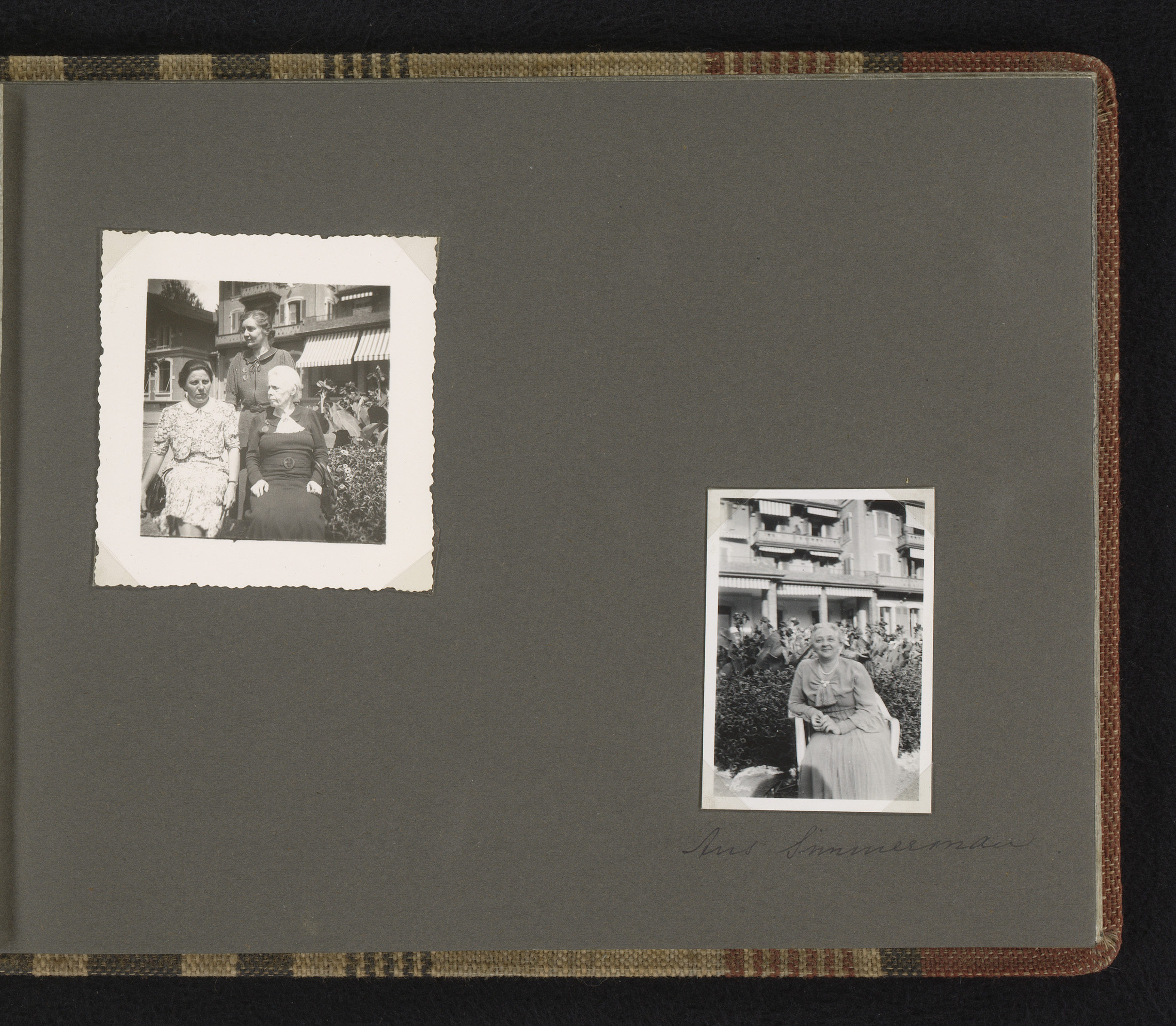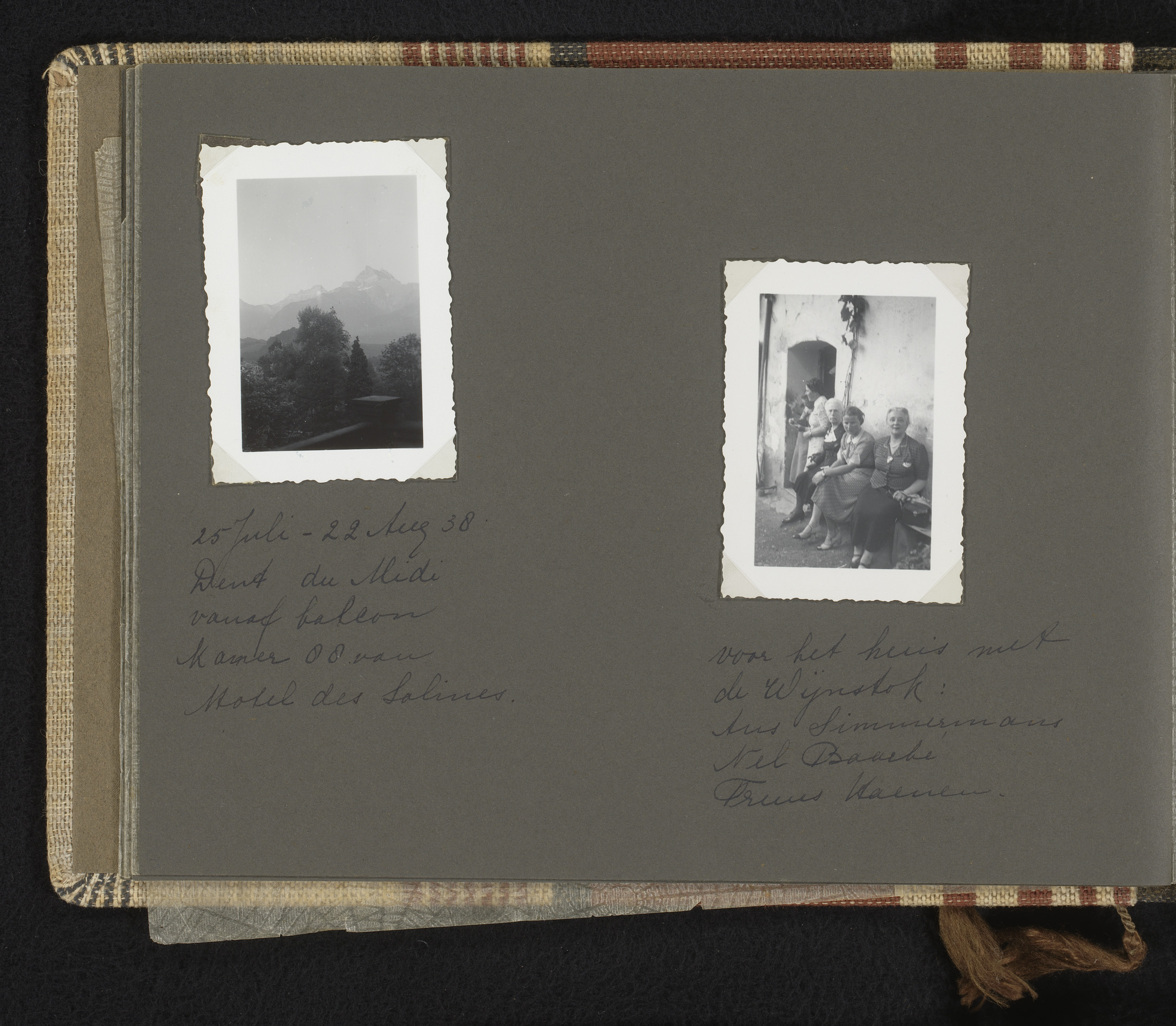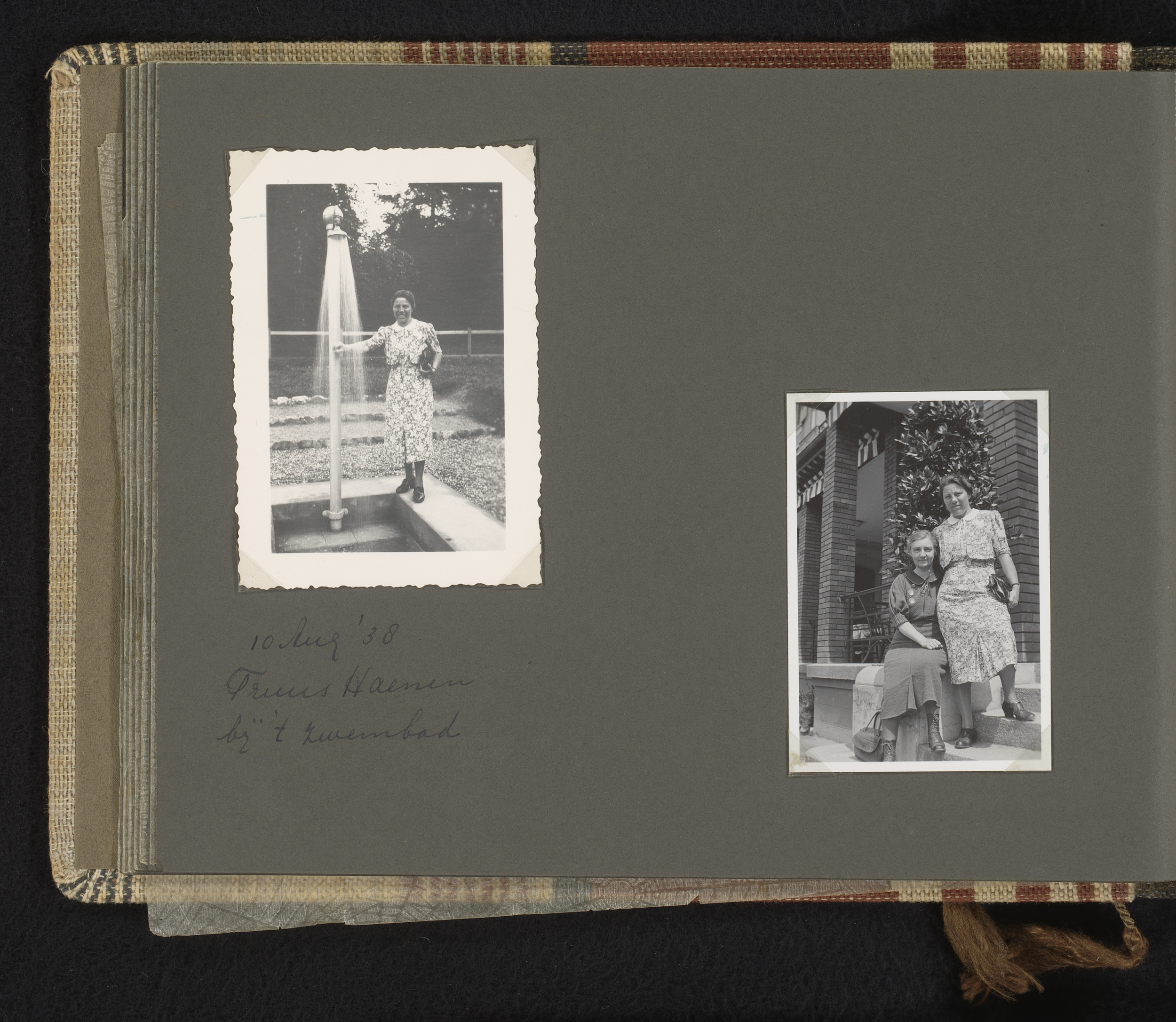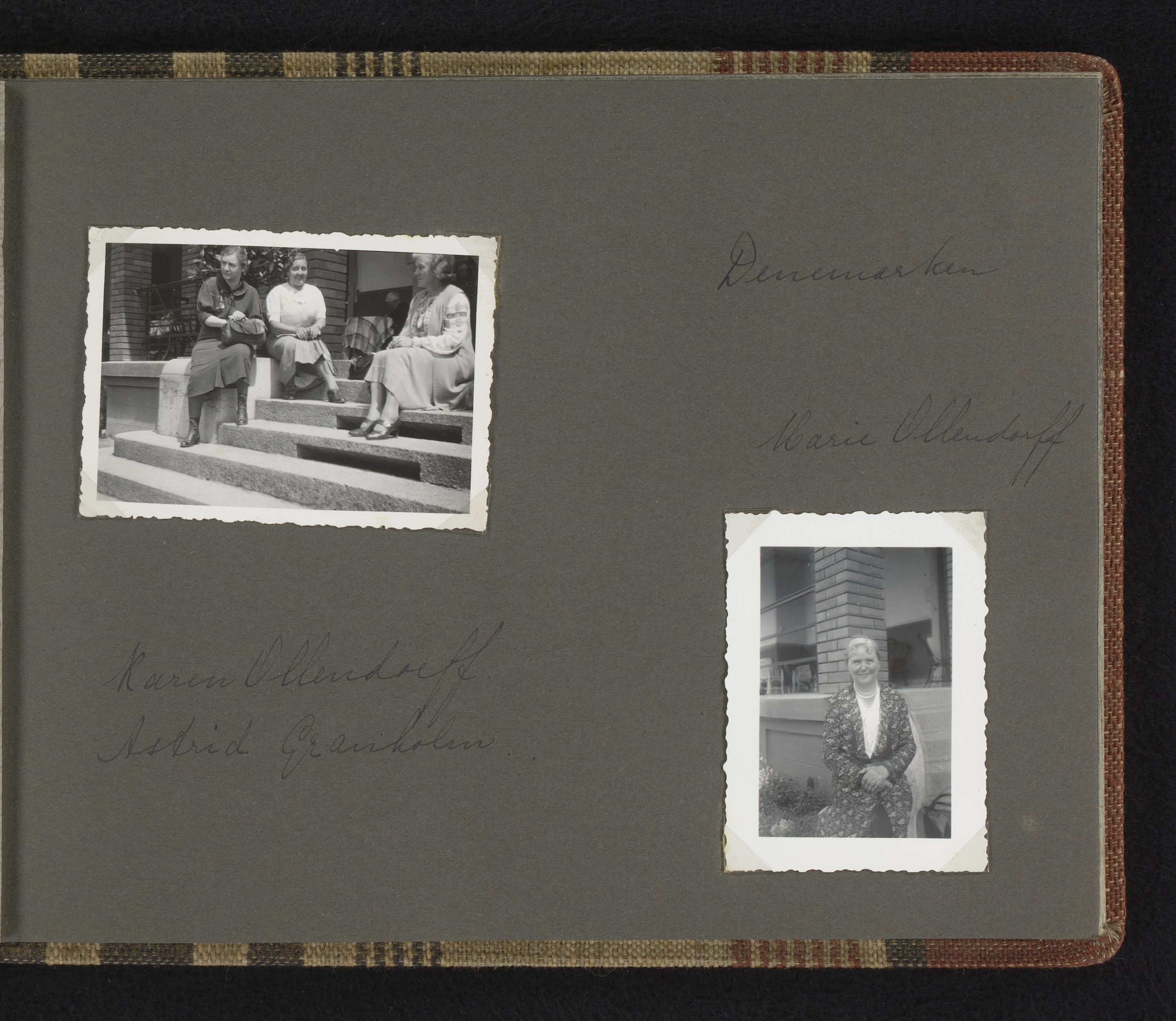 Goepsfoto van drie zittende vrouwen met daarachter e...