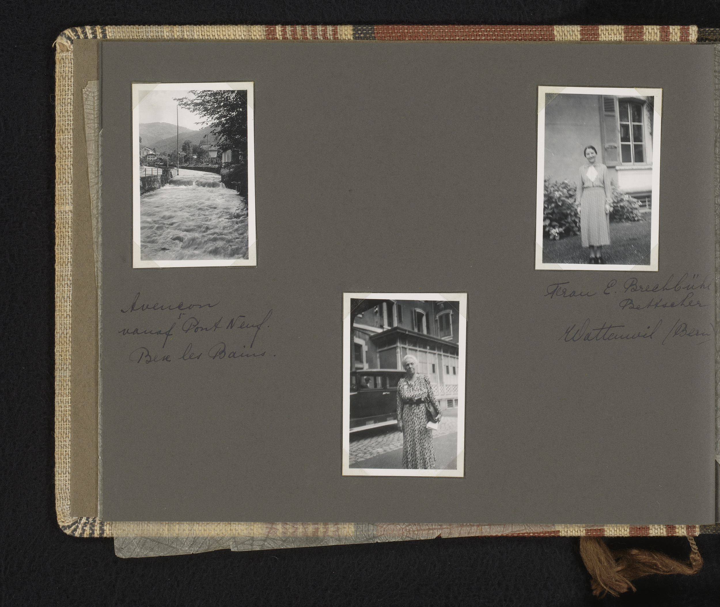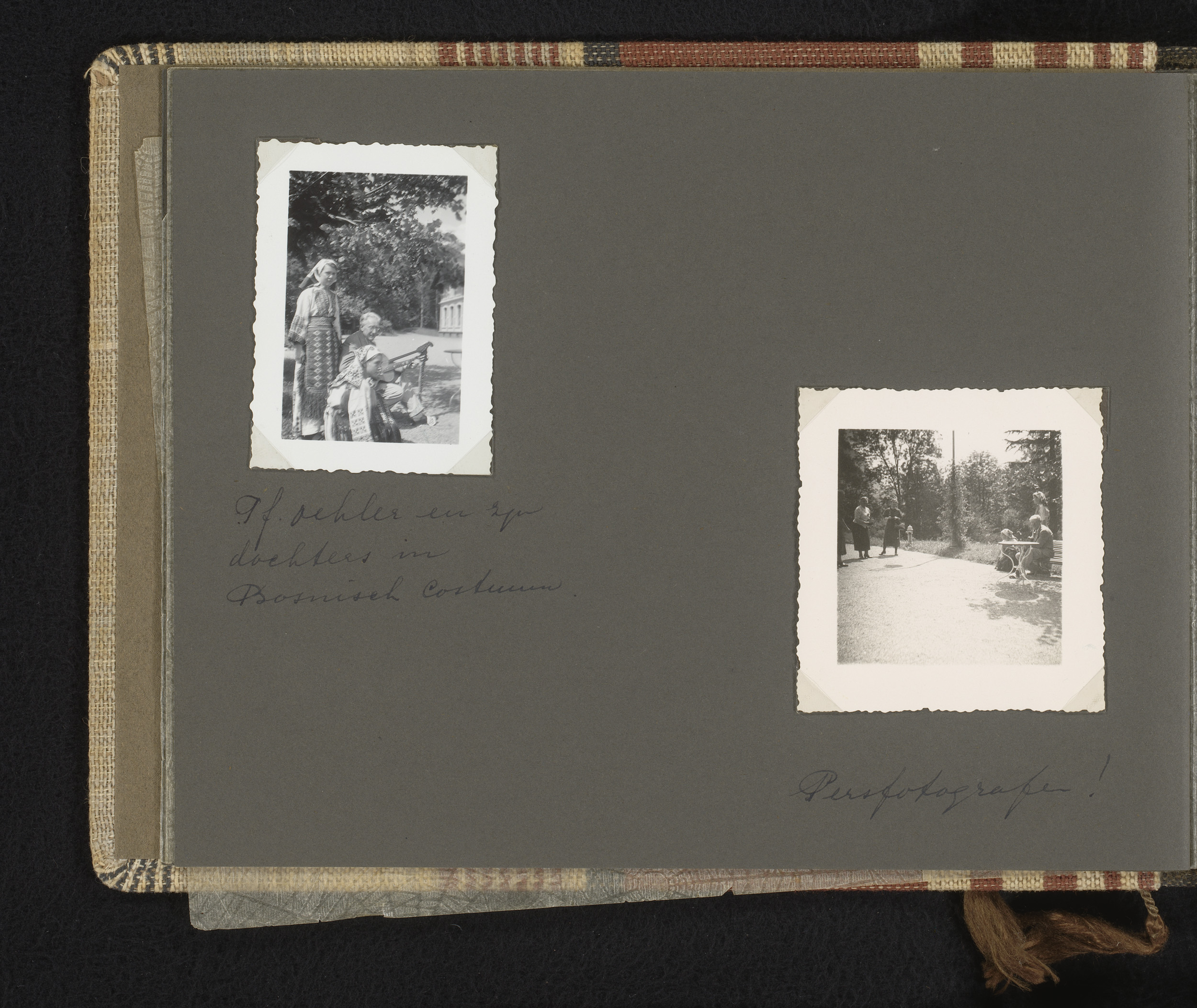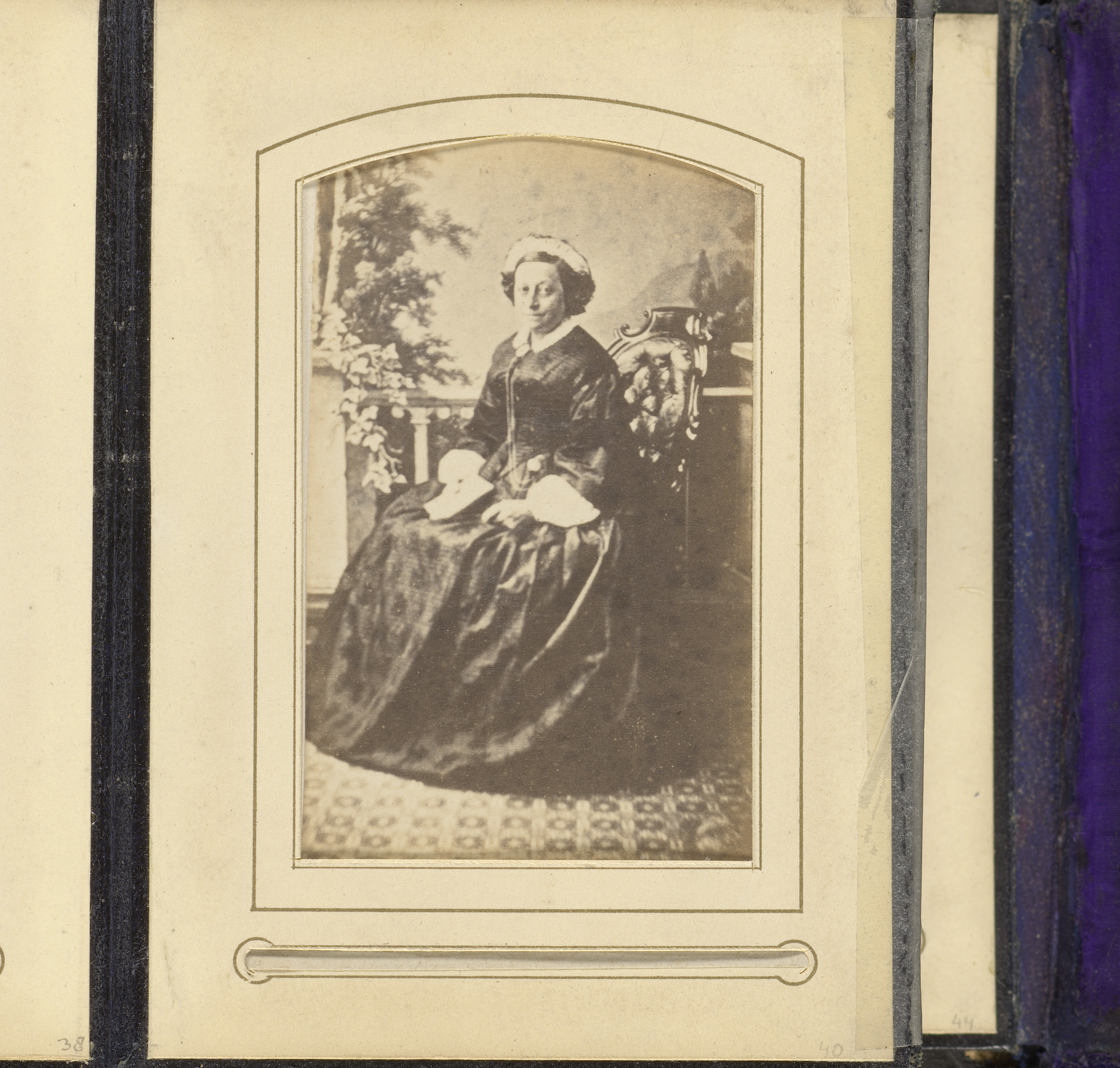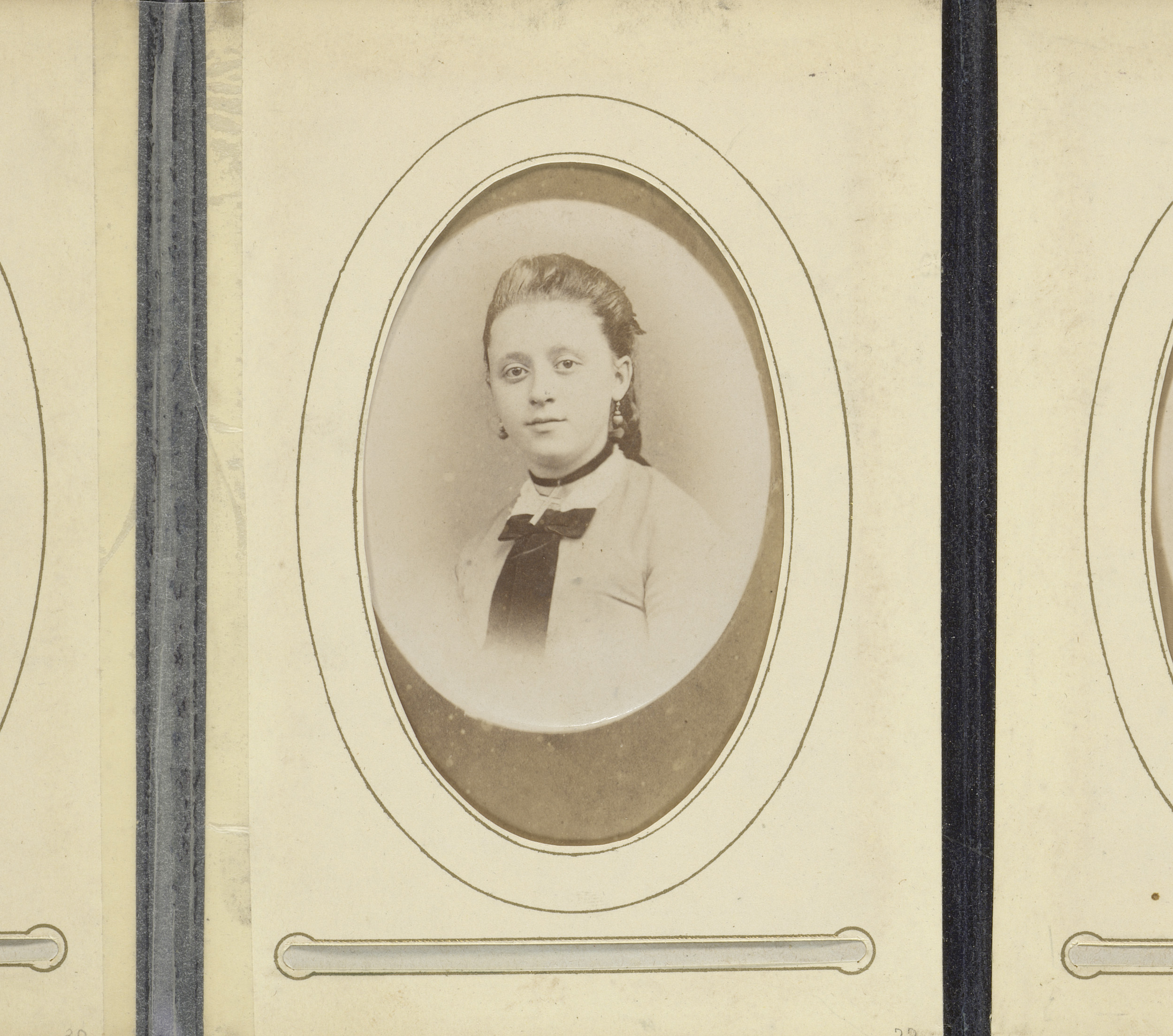 Goepsfoto van drie zittende vrouwen met daarachter e...