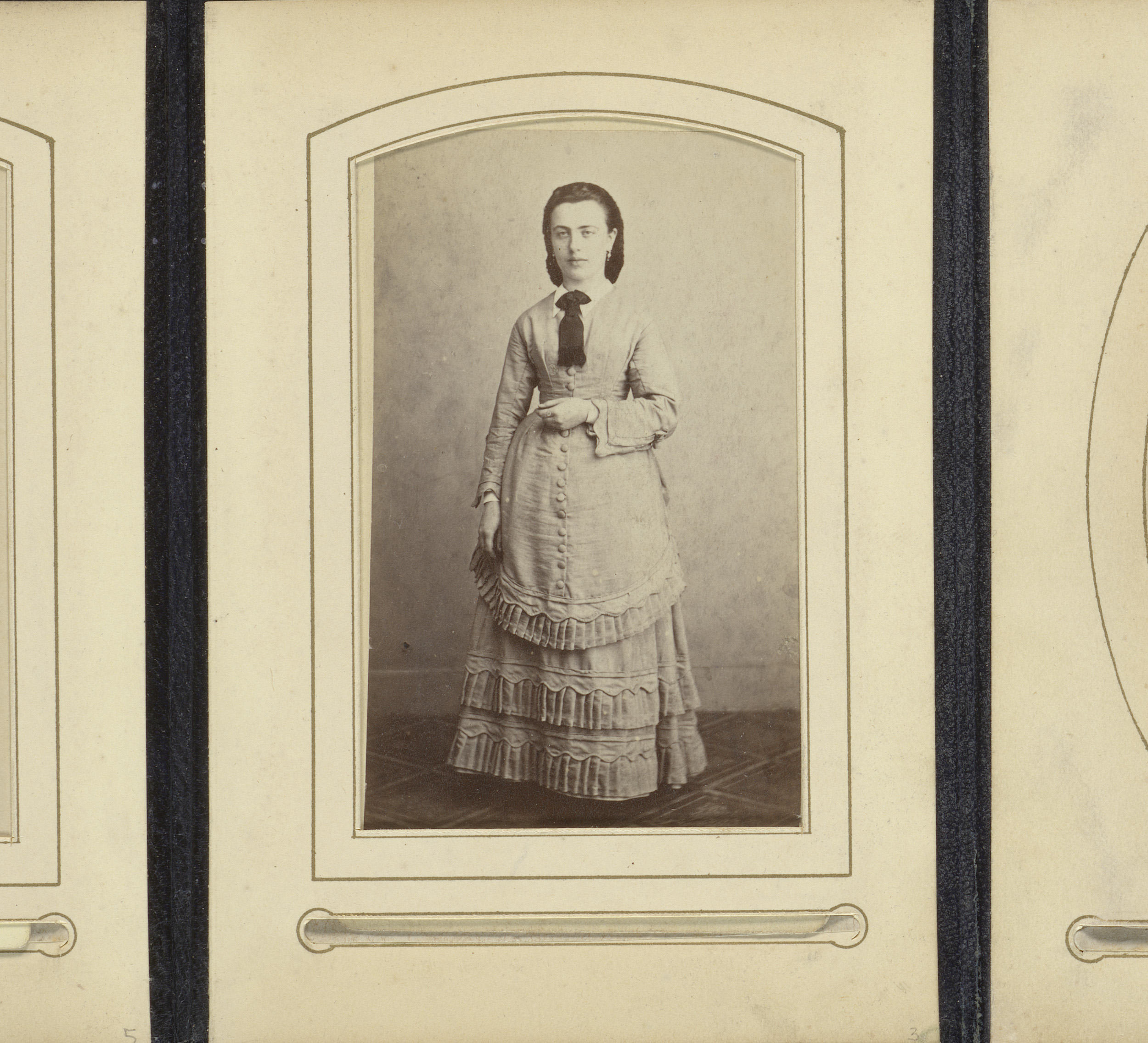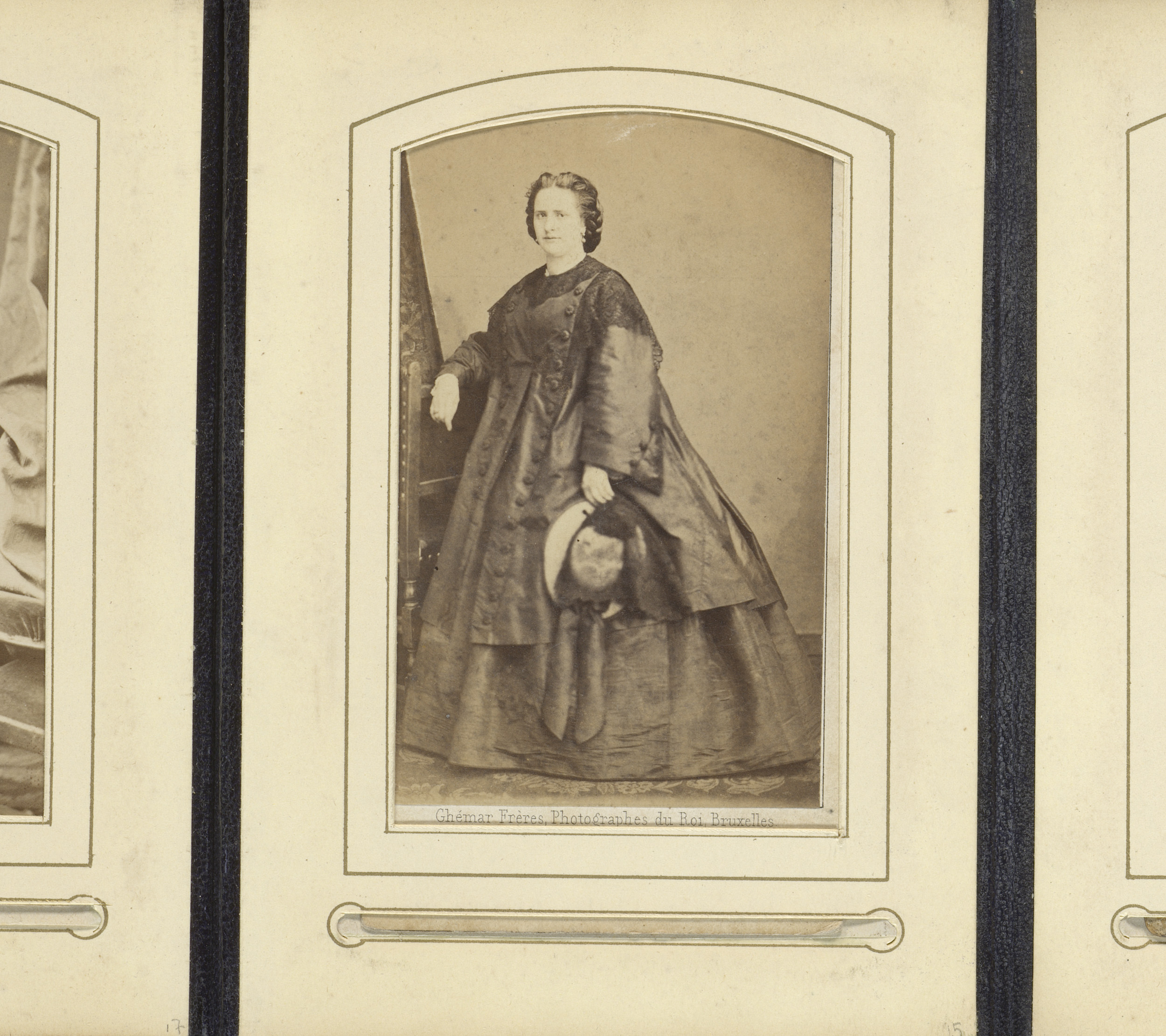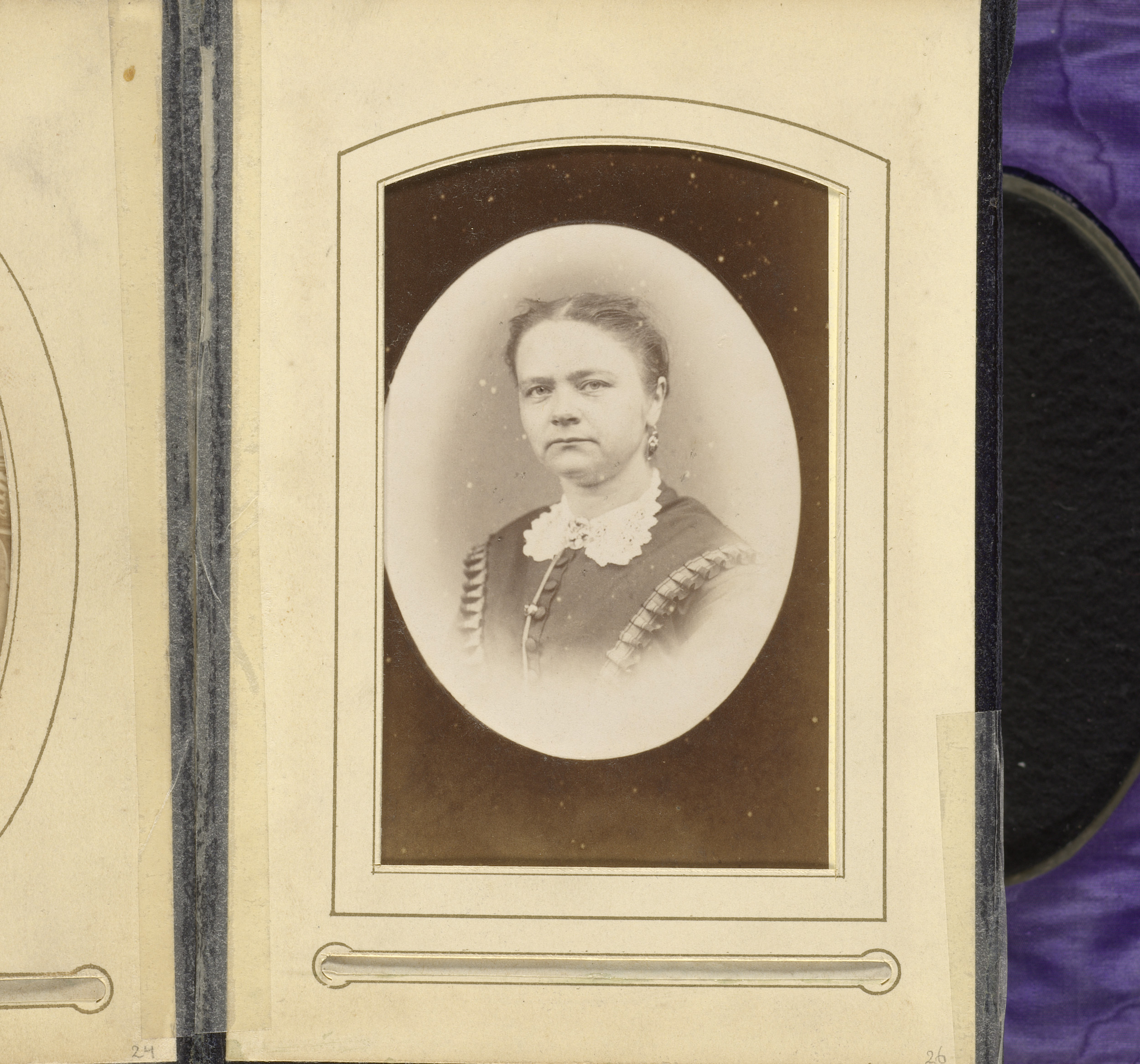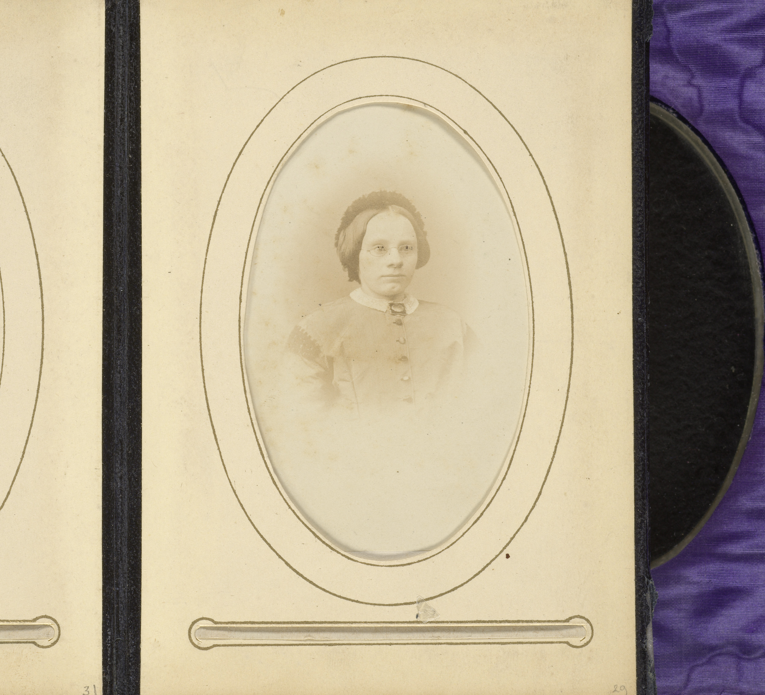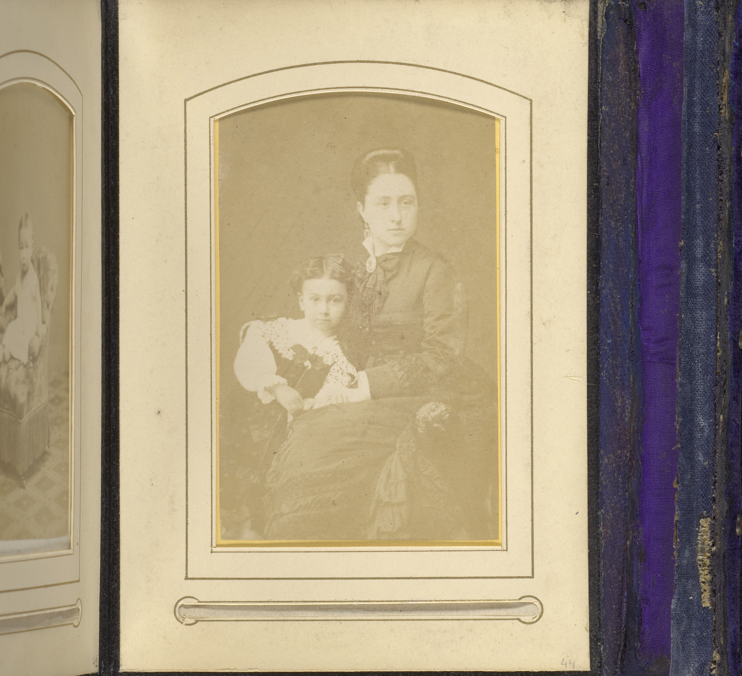 Goepsfoto van drie zittende vrouwen met daarachter e...