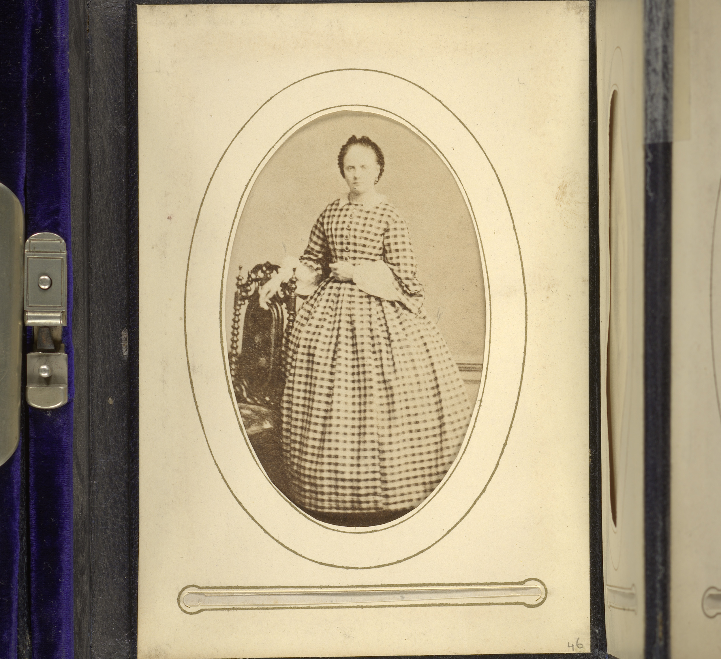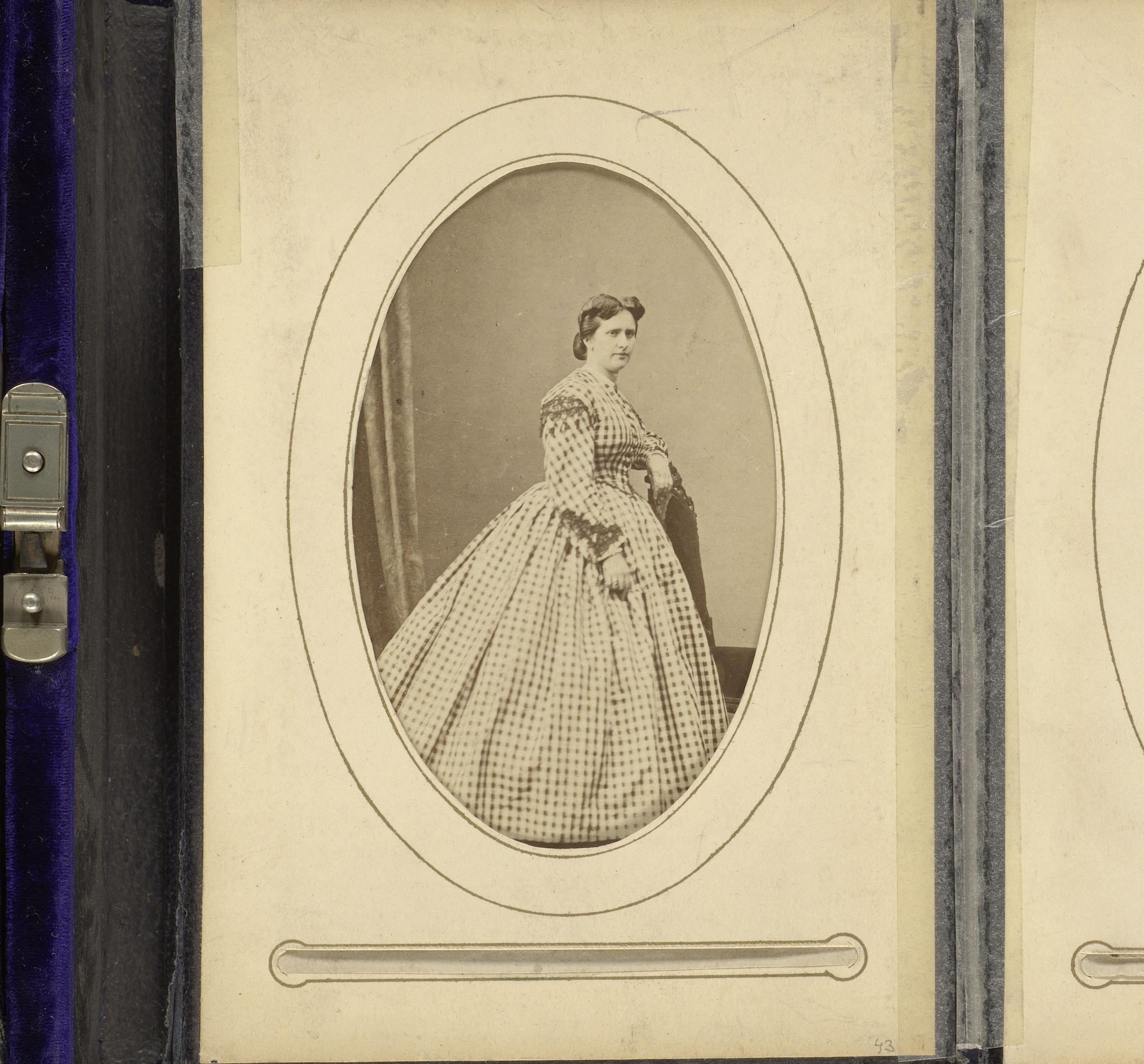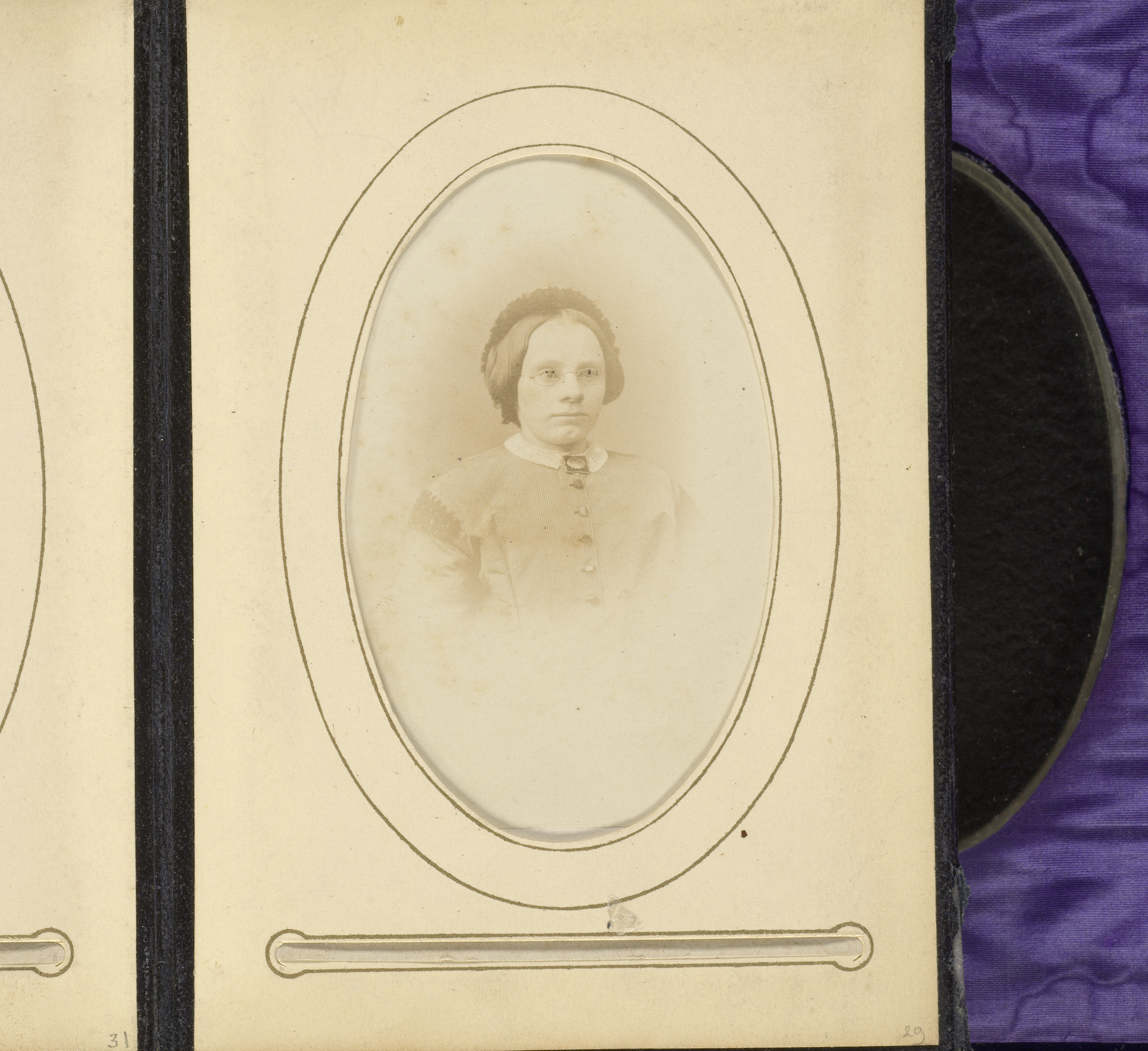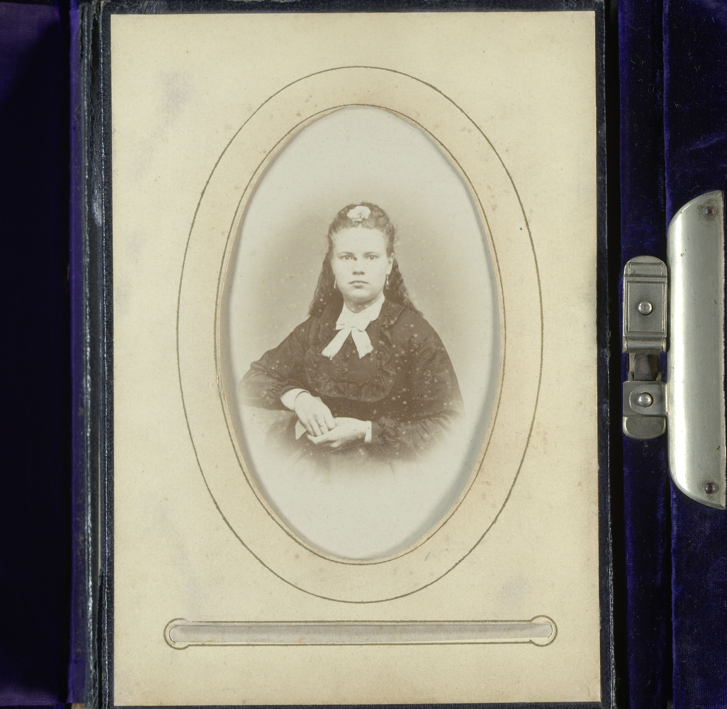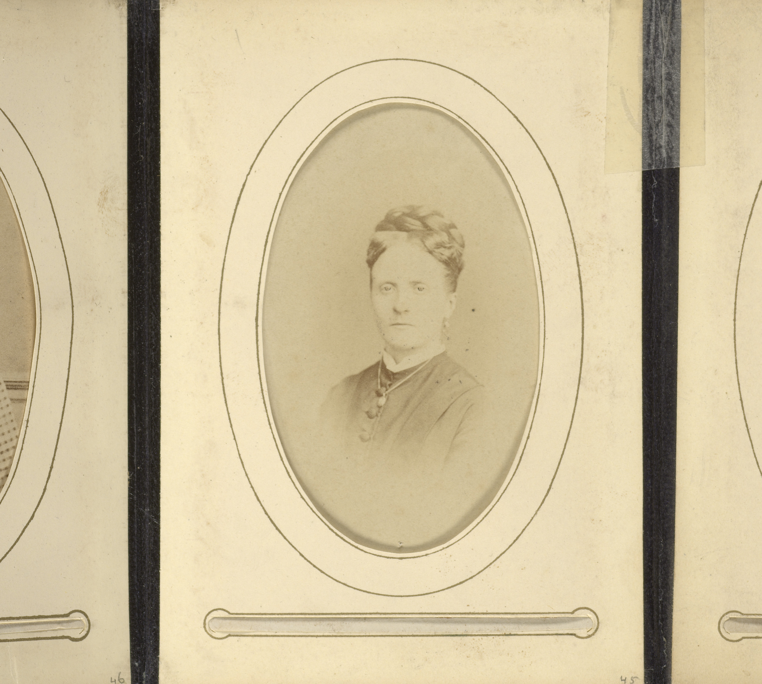 Goepsfoto van drie zittende vrouwen met daarachter e...