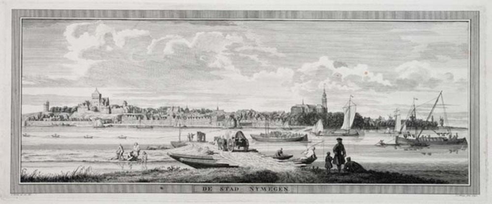 Gezicht op Nijmegen vanaf de overkant van de Waal