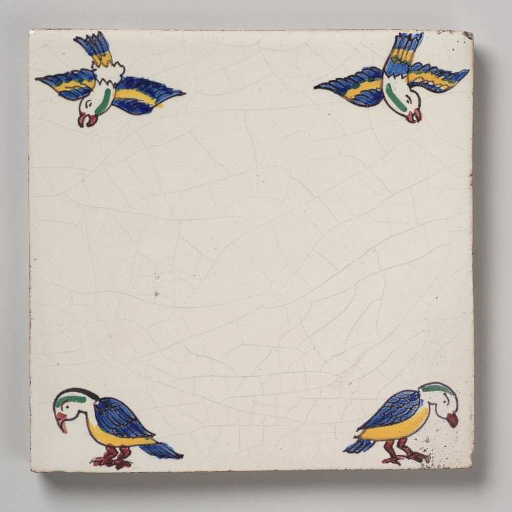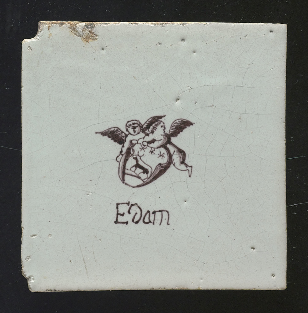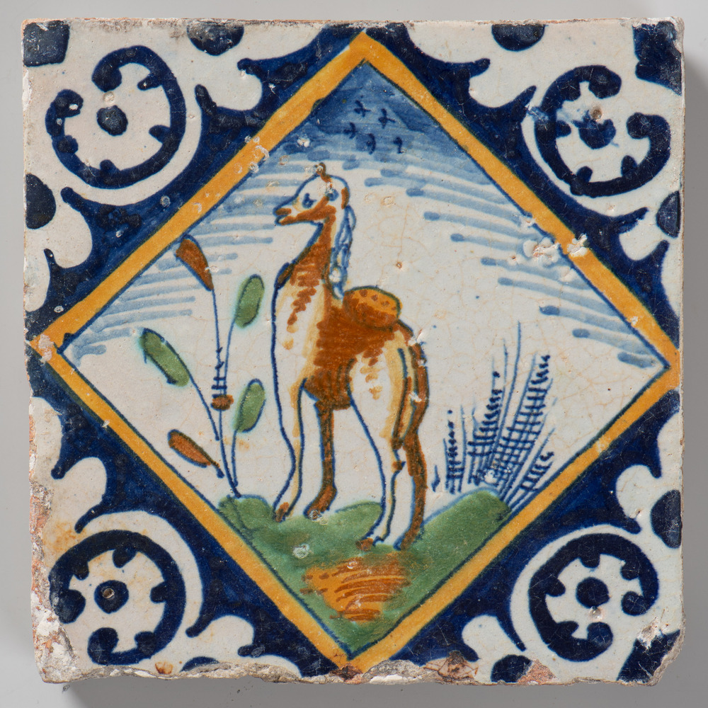 Tegel van keramiek met tinglazuur, voorstellende: Se...