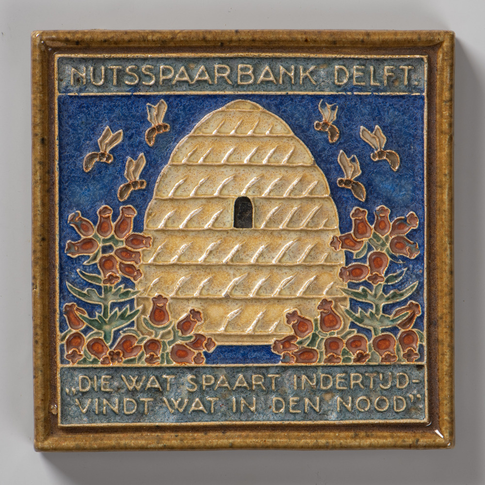 Tegel in cloisonné-techniek, met voorstelling: honin...