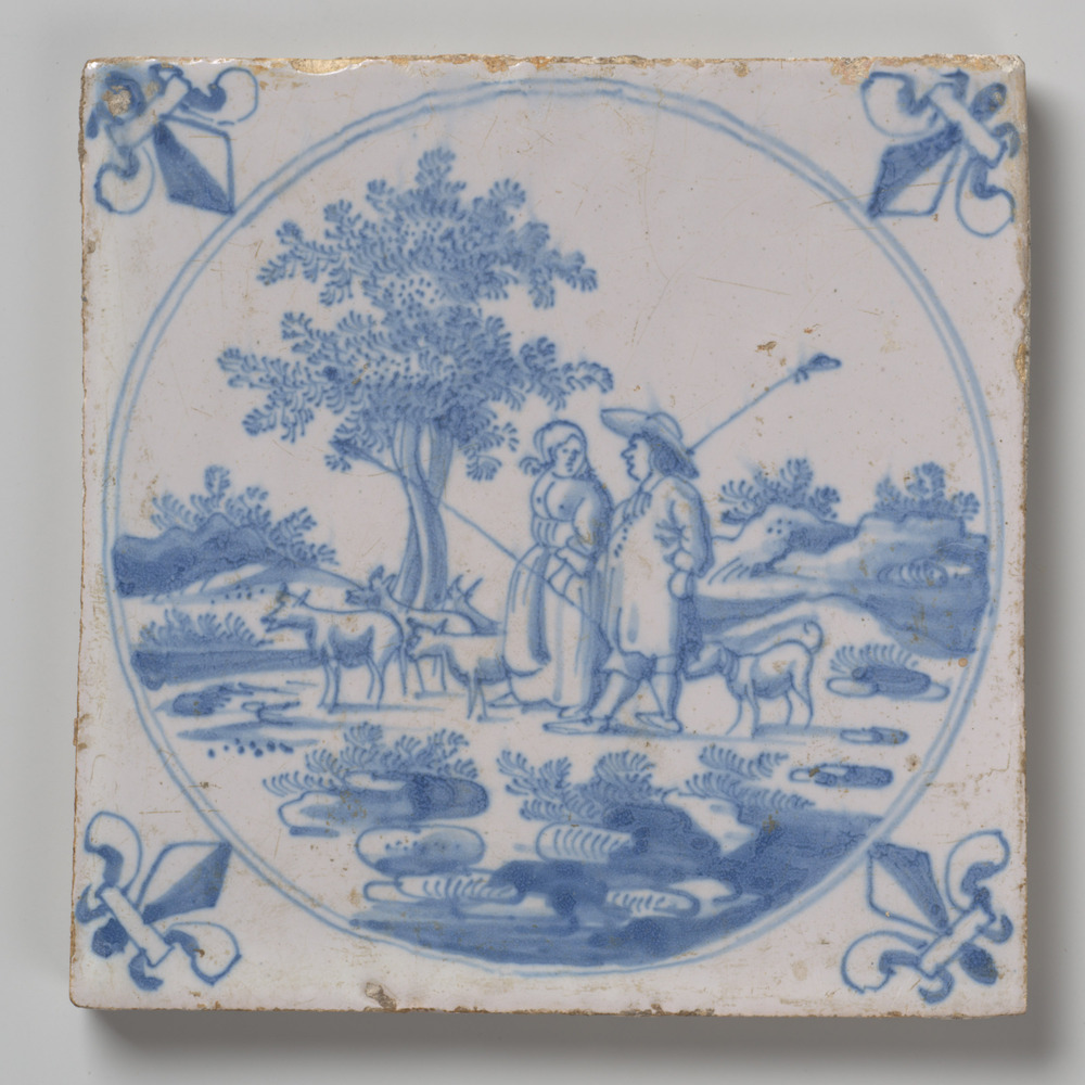 tegel van aardewerk met tinglazuur, voorstellende: h...
