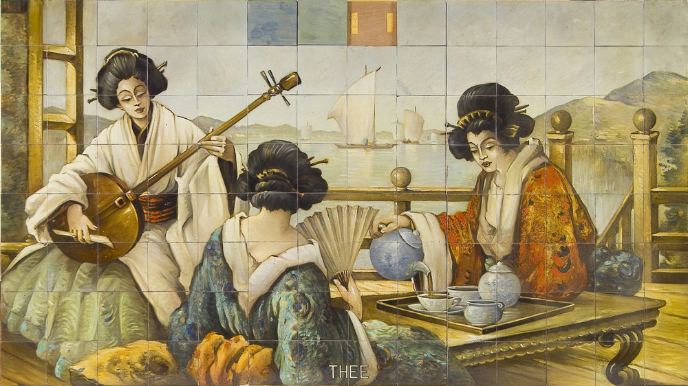 Tableau, getiteld 'Thee', van 112 keramische tegels,...