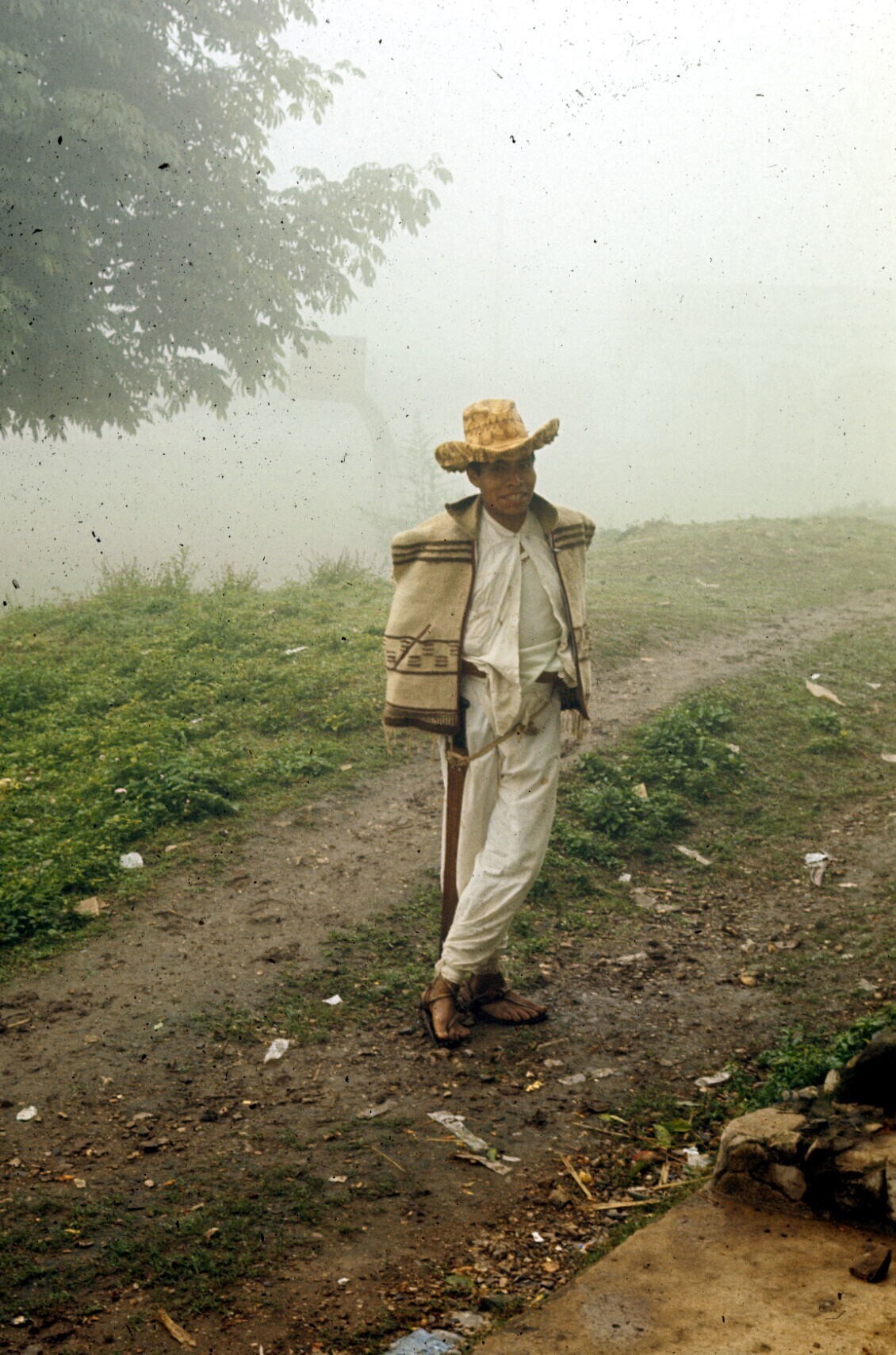 man in traje indio, met hoed en jorongo (poncho)