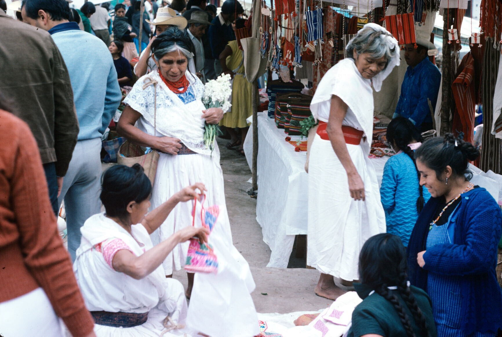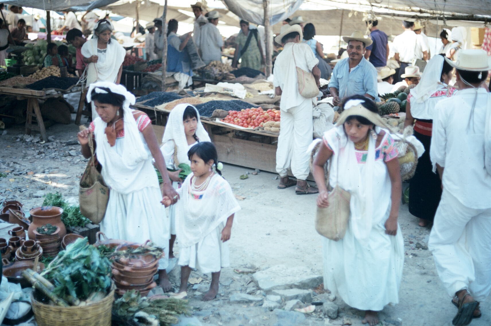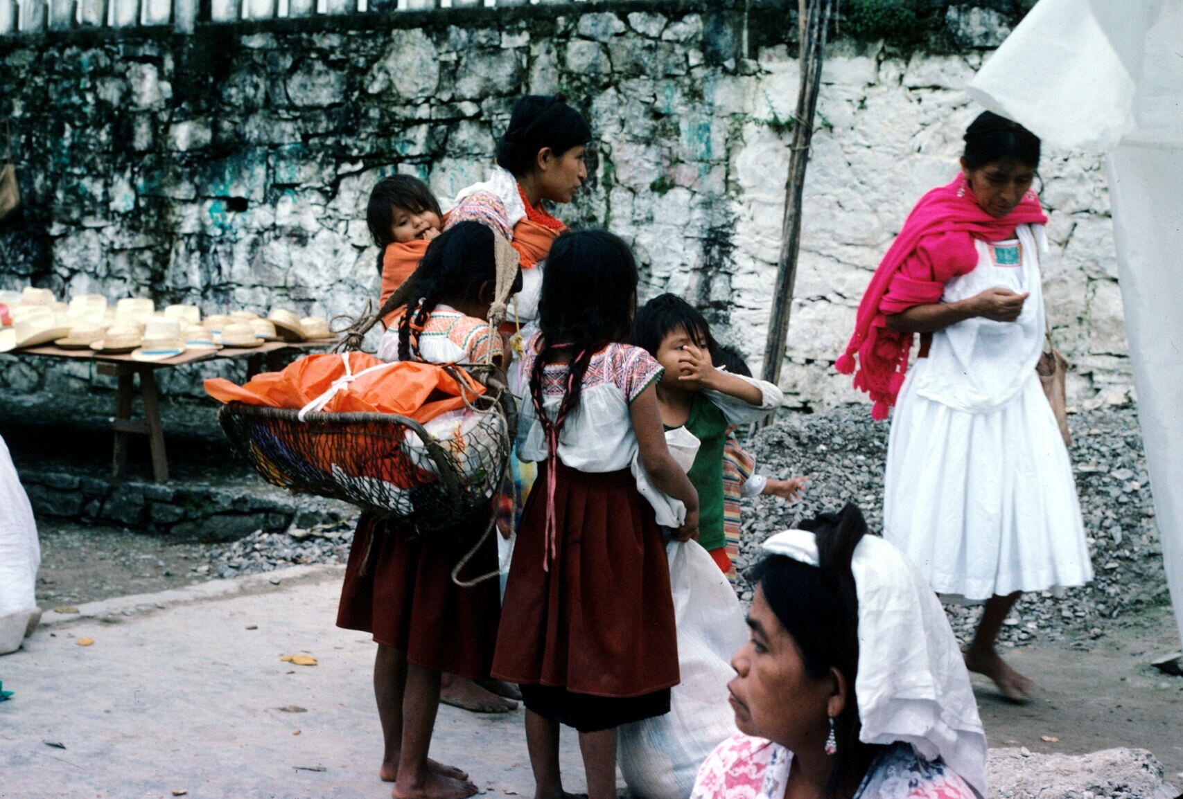 meisjes en vrouwen; NB meisje met hua'cal (draagmand)