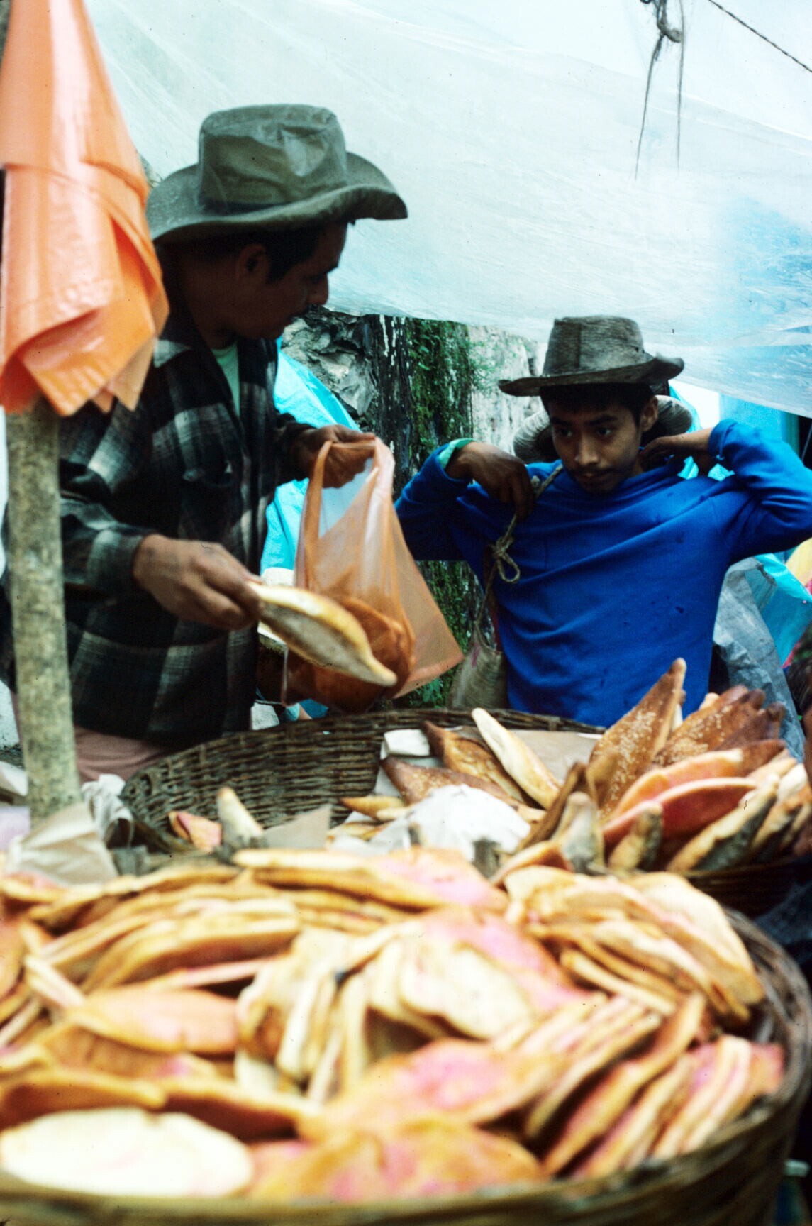 kind in draagdoek en kind in hua'cal (draagmand)