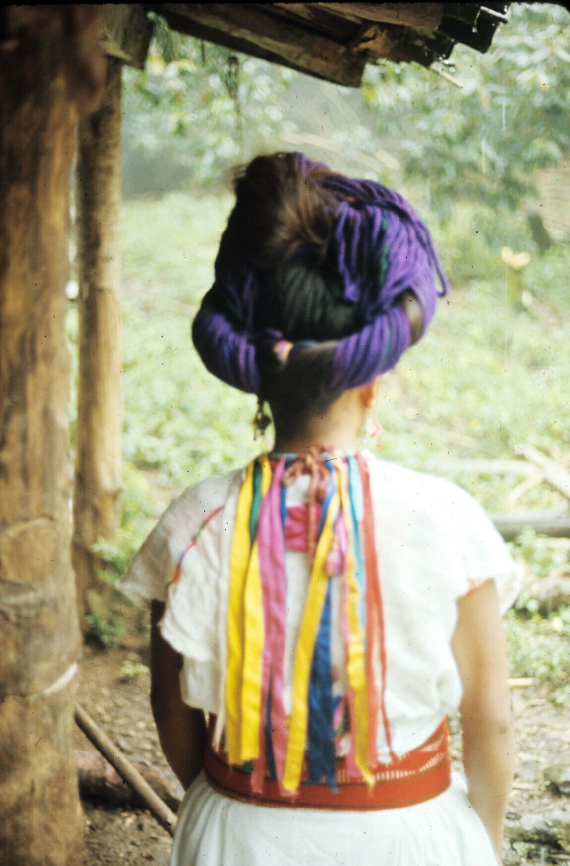vrouw met maxtahual, op rug gezien