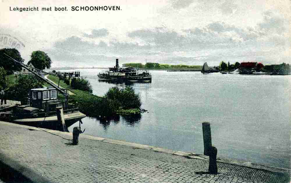Ansichtkaart, voorstellende een Lekgezicht met boot ...