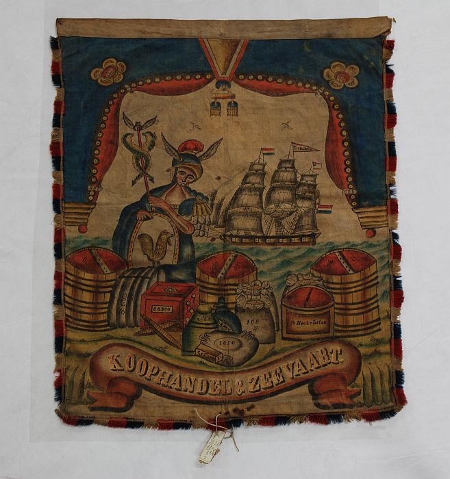 Witte katoenen beschilderde vlag met allegorische vo...