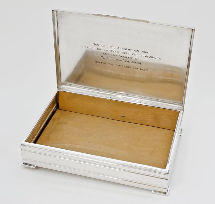 Zilveren sigarendoos of sigarettendoos "Mr. G.E. Van...