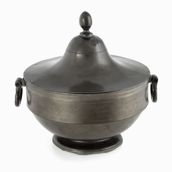 Ronde soepterrine met opstaande kraag en twee halfci...