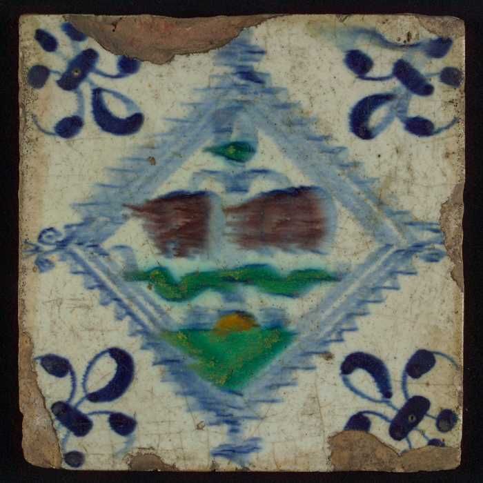 Tegel met polychrome granaatappel, fleur de lis als ...