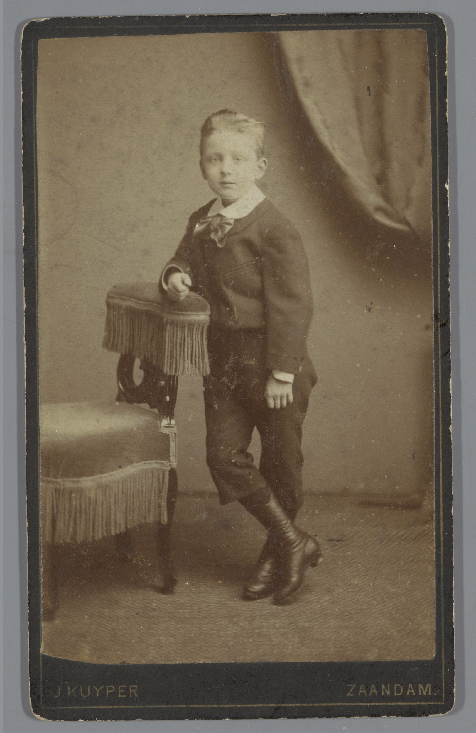 Portret van een onbekende jongen naast een stoel