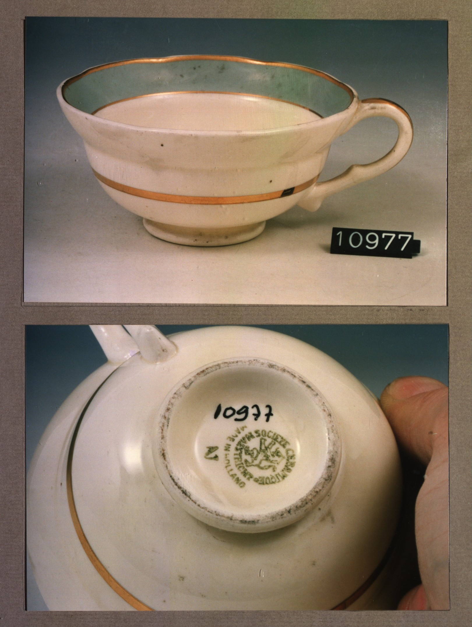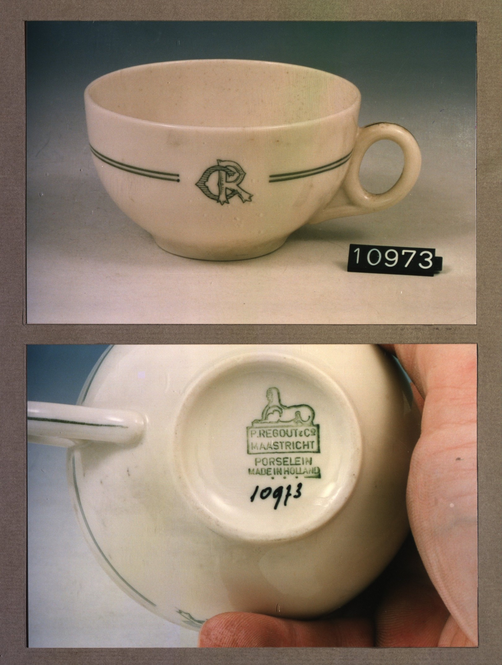 Kop met opschrift, model F met decor H 't L