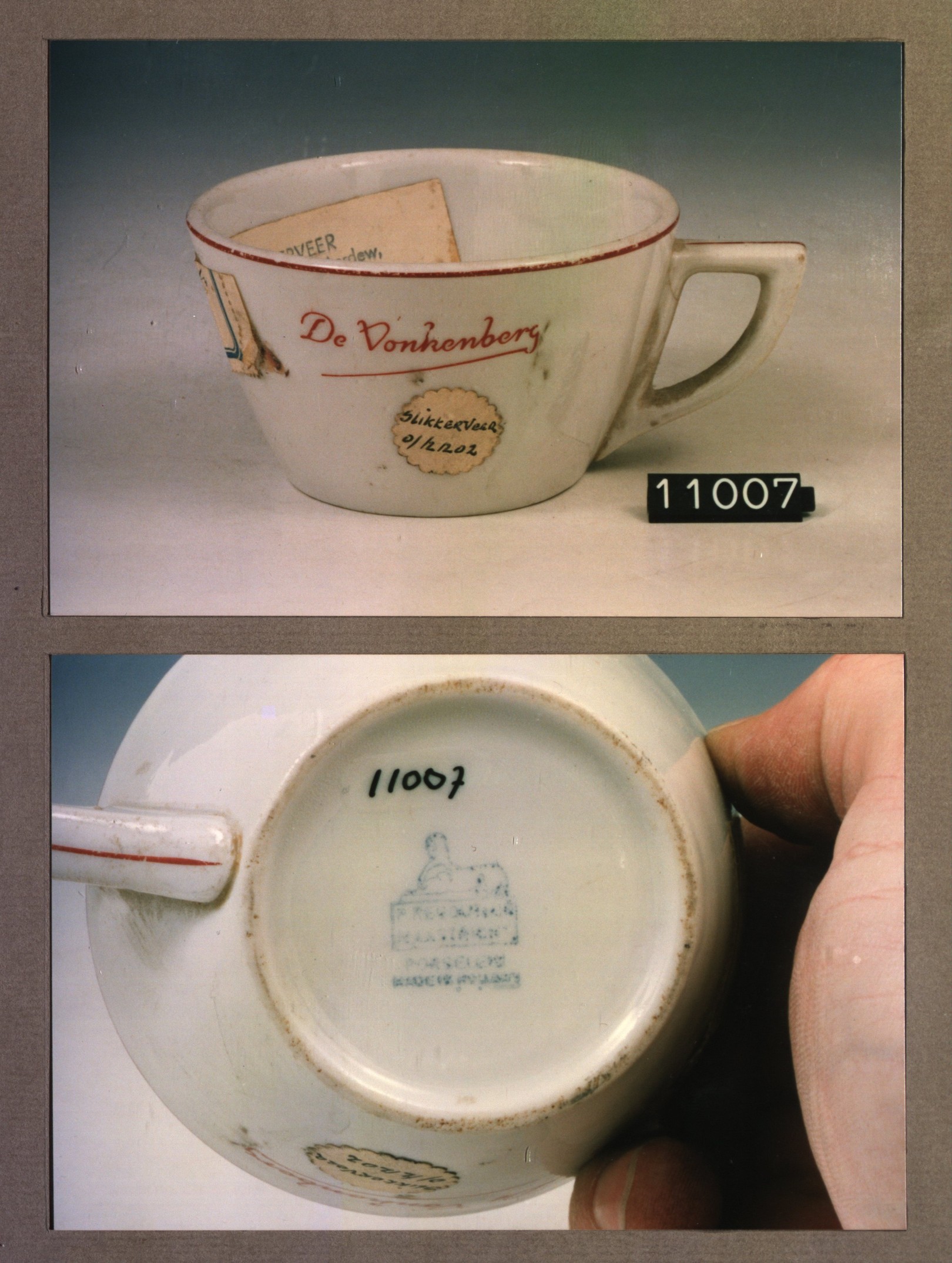 Kop met opschrift, model F met decor Vismark d'olde