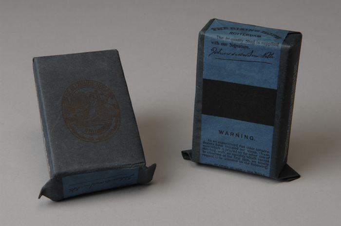 Twee etalagepakjes shag met donkerblauwe wikkel "Van...
