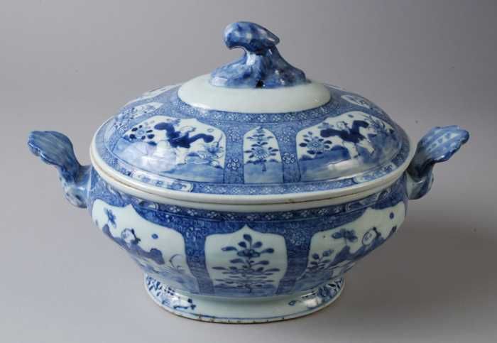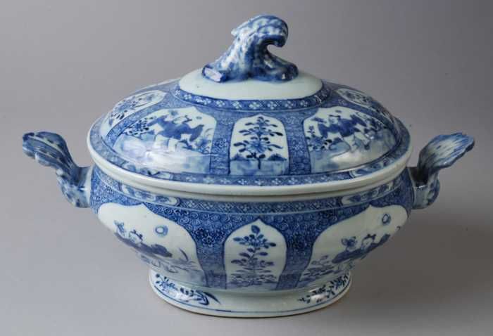 Porseleinen terrine met deksel, in blauw Aziatisch f...