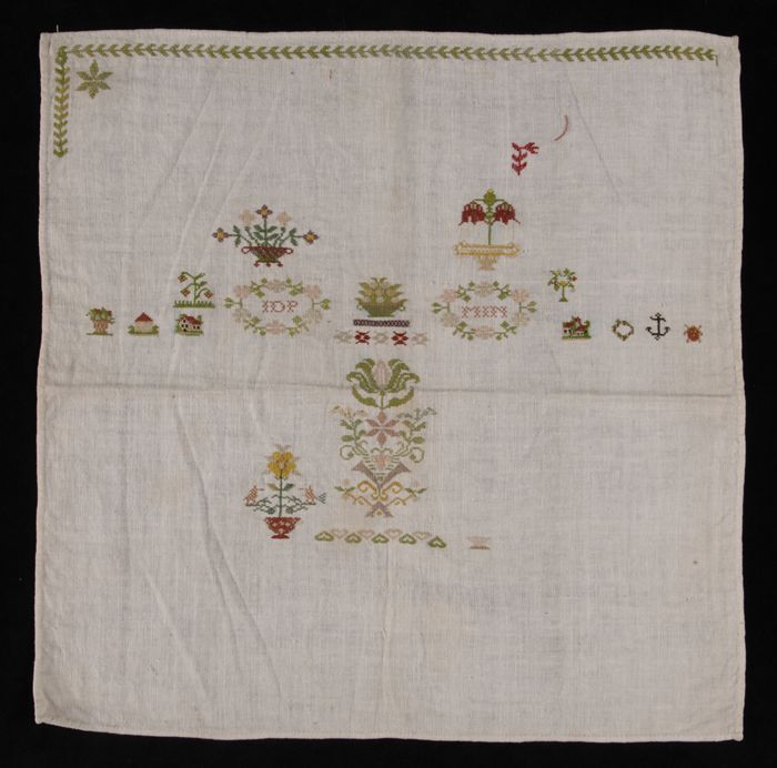 Onvoltooide merklap gewerkt in kruissteek in gekleur...
