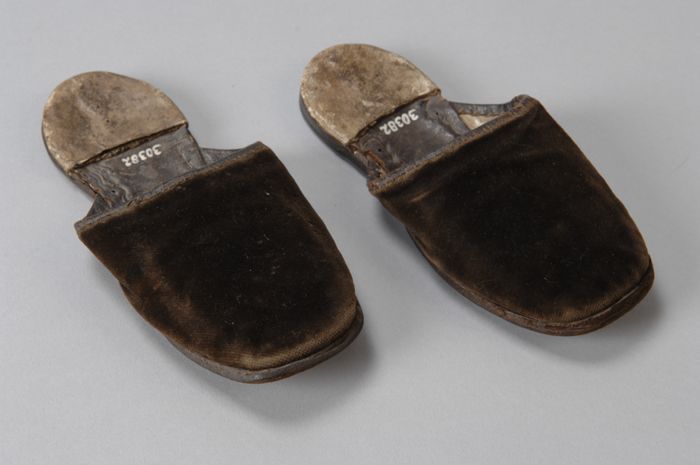 Kinderslippers of muiltje met bruin-grijs fluwelen b...