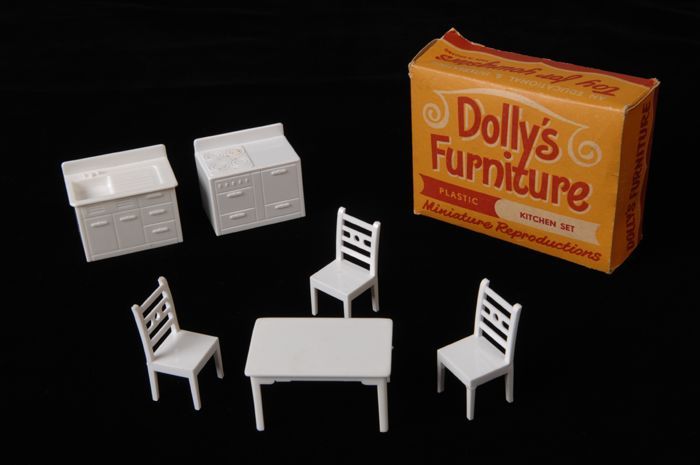 Doosje met wit plastic poppenhuis meubilair, keukens...