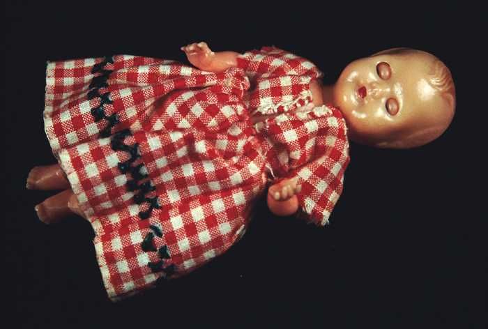 Doosje met rood plastic poppenhuis meubilair, slaapk...