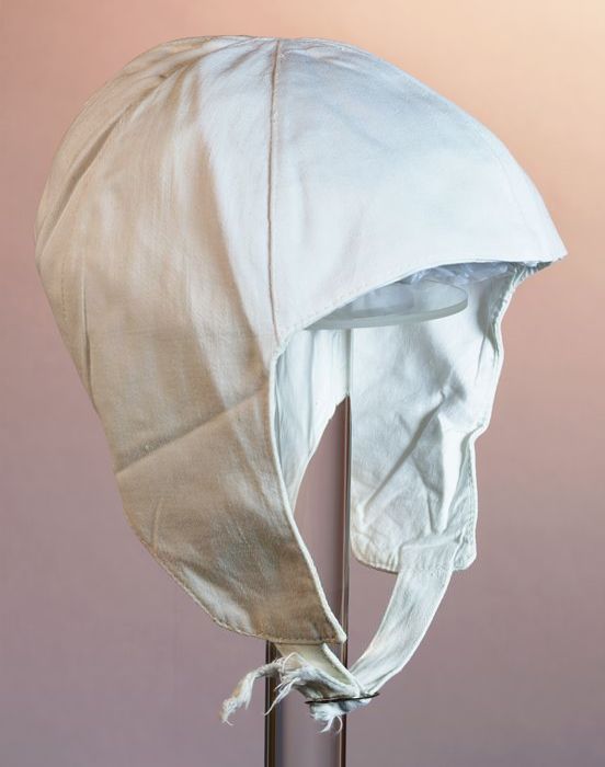 Kop van een oudere vrouw met kapje
