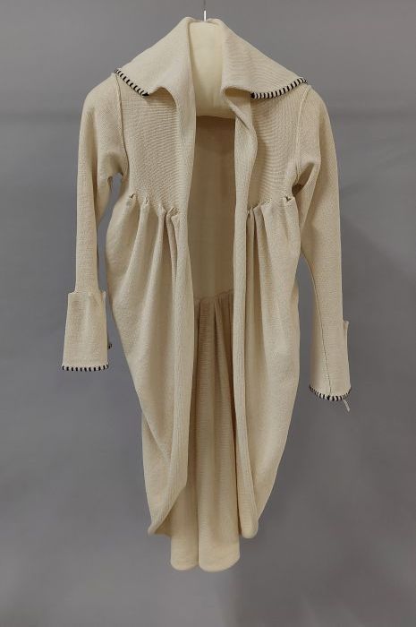 Kinderjas van bruin fluweel, sluiting middenvoor met...