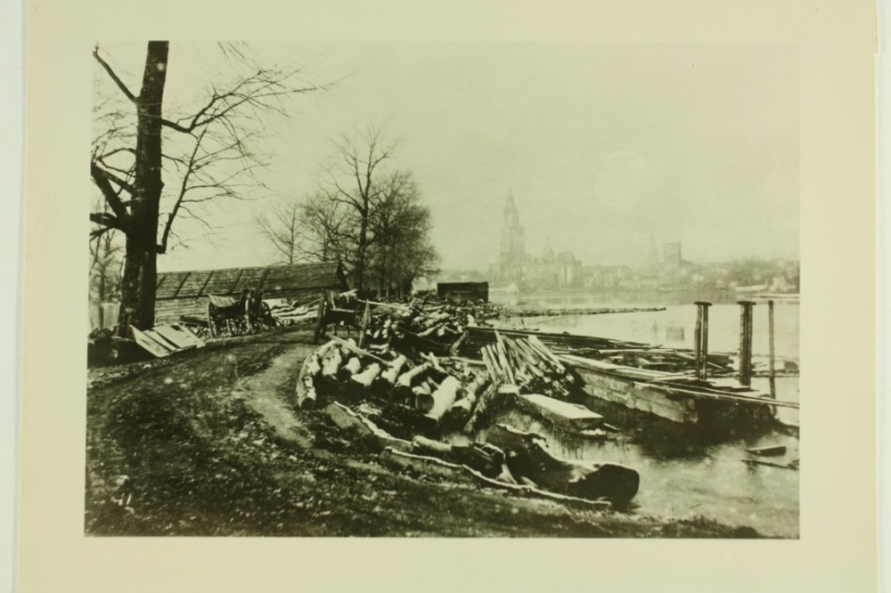 Schilderij een gezicht op Huissen vanaf de Looveerwe...