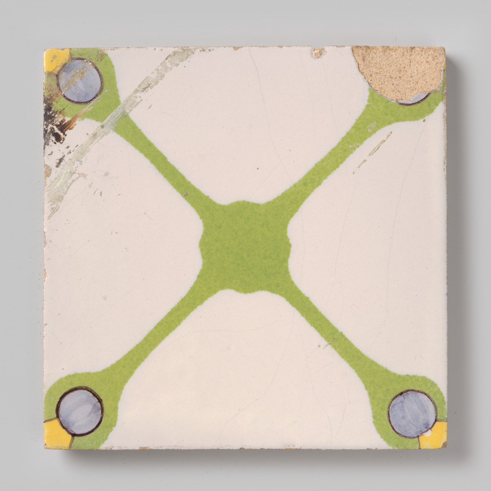 tegel van keramiek met tinglazuur, voorstellende: de...