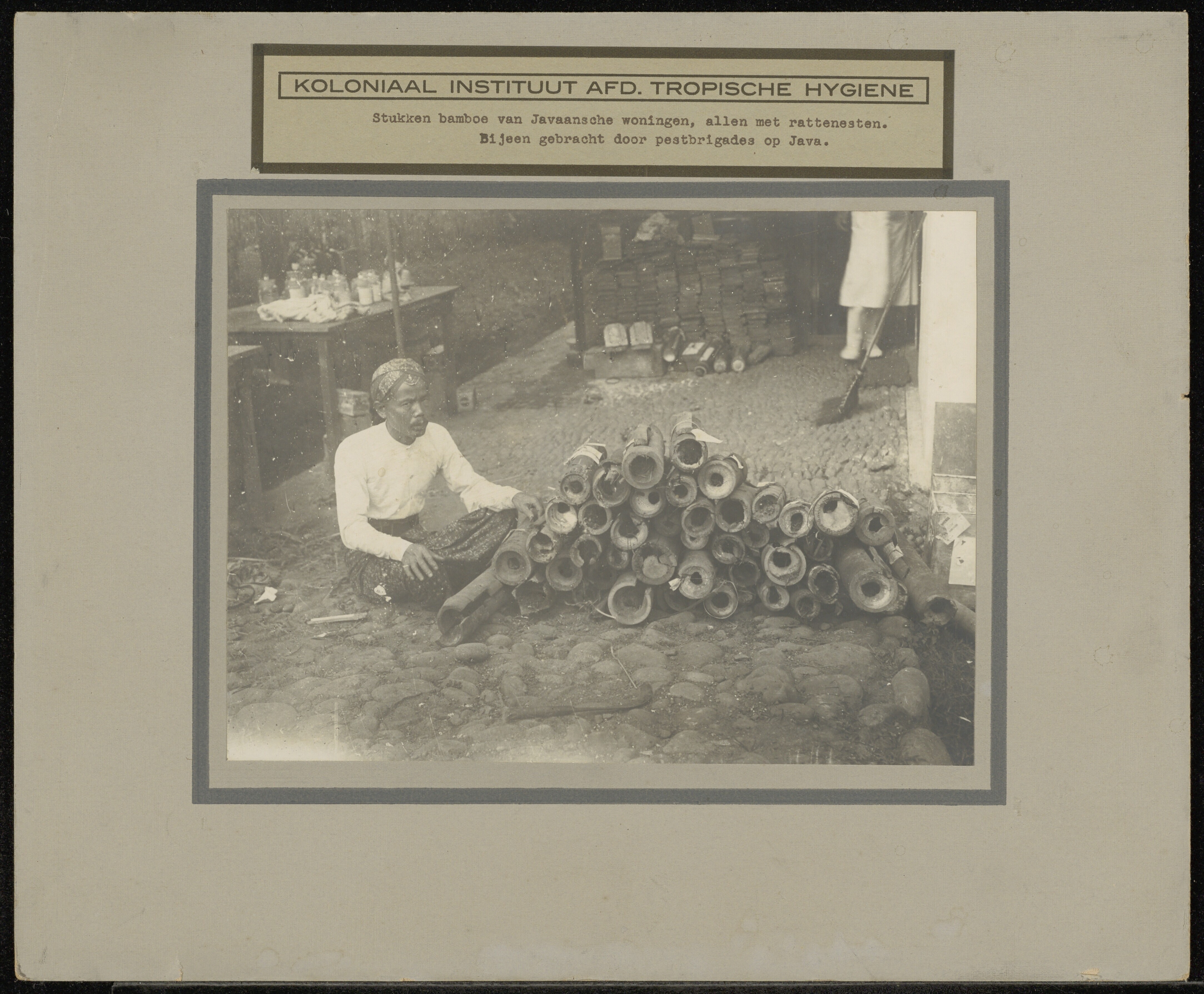 Door de pestbrigade bijeengebrachte holle bamboe waa...