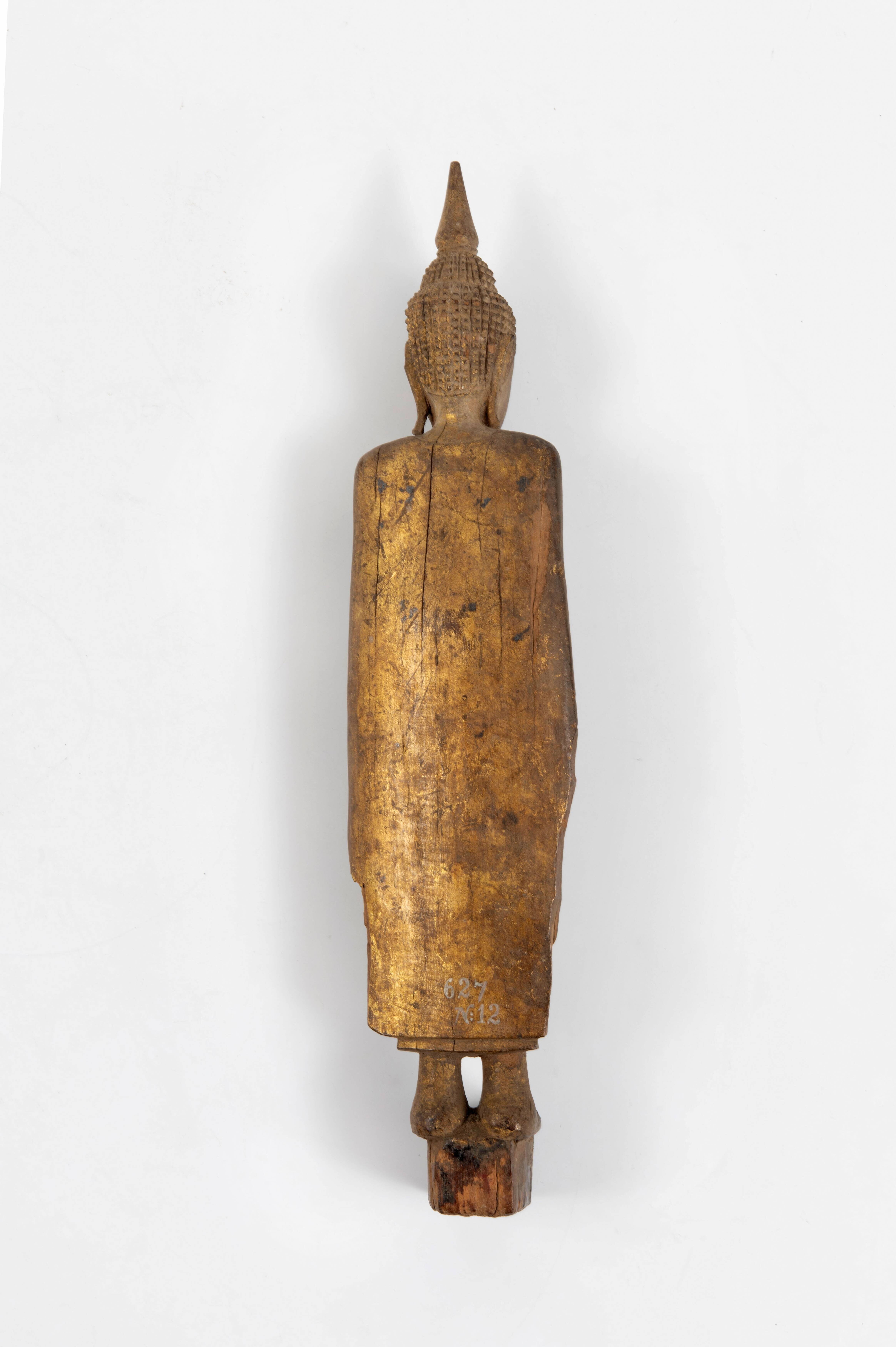 Een houten beeld van een vorst, waarschijnlijk Rama